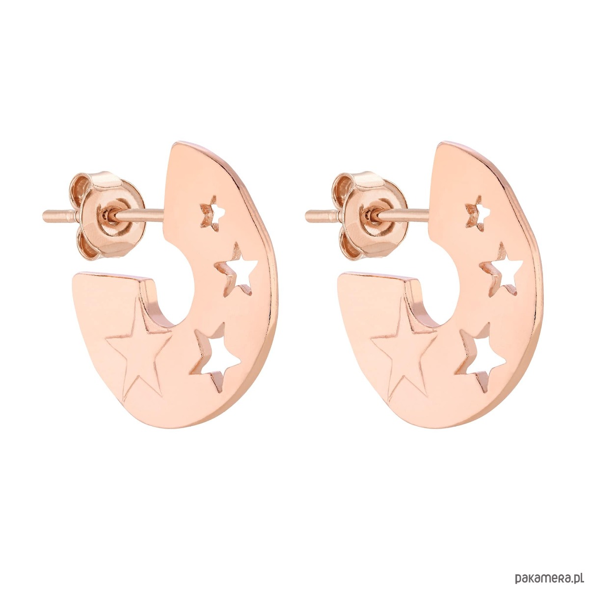 Złote kolczyki z gwiazdkami. Zapinane na sztyft. Kolczyki posiadają zapięcia (baranki). Całość wykonana ze srebra 925 powlekanego 18 karatowym różowym złotem.