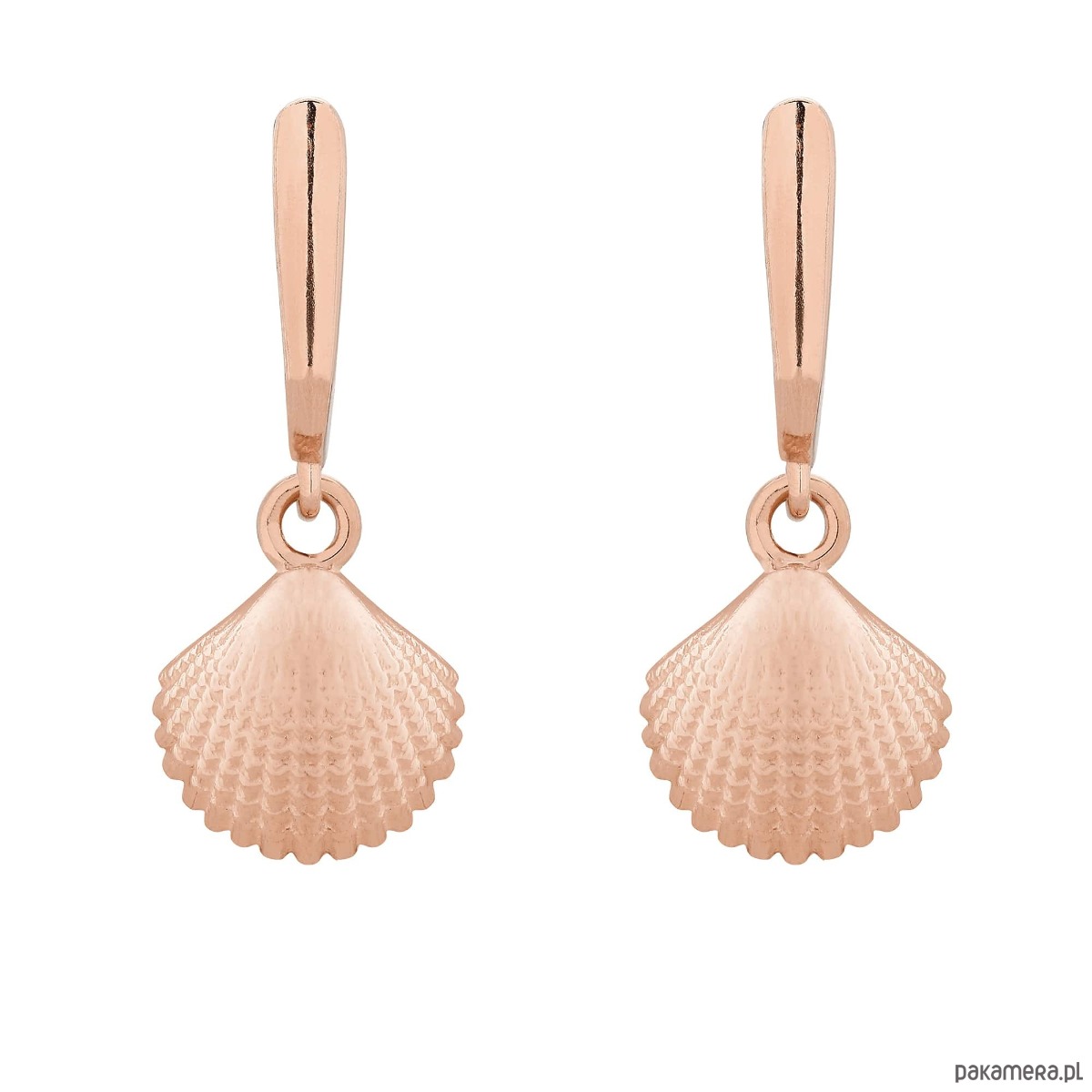 Złote kolczyki z muszelkami. Zapinane na bigle angielskie. Całość wykonana ze srebra 925 powlekanego 18 karatowym różowym złotem.