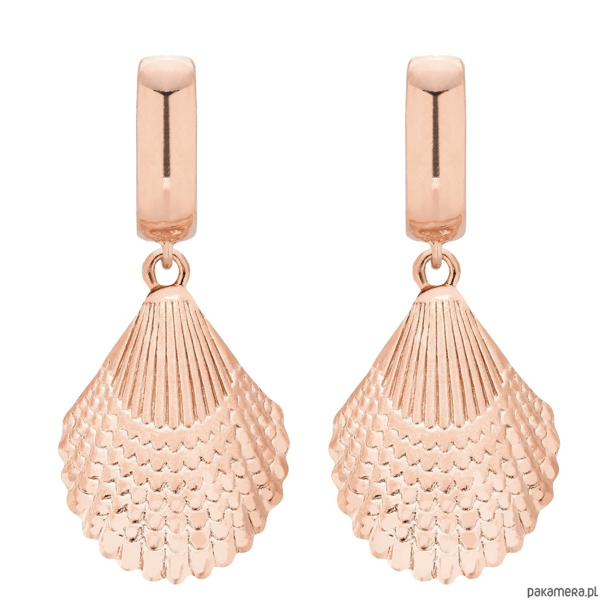 Złote duże kolczyki z muszlami. Zapinane na bigle. Całość wykonana ze srebra 925 powlekanego 18 karatowym różowym złotem.