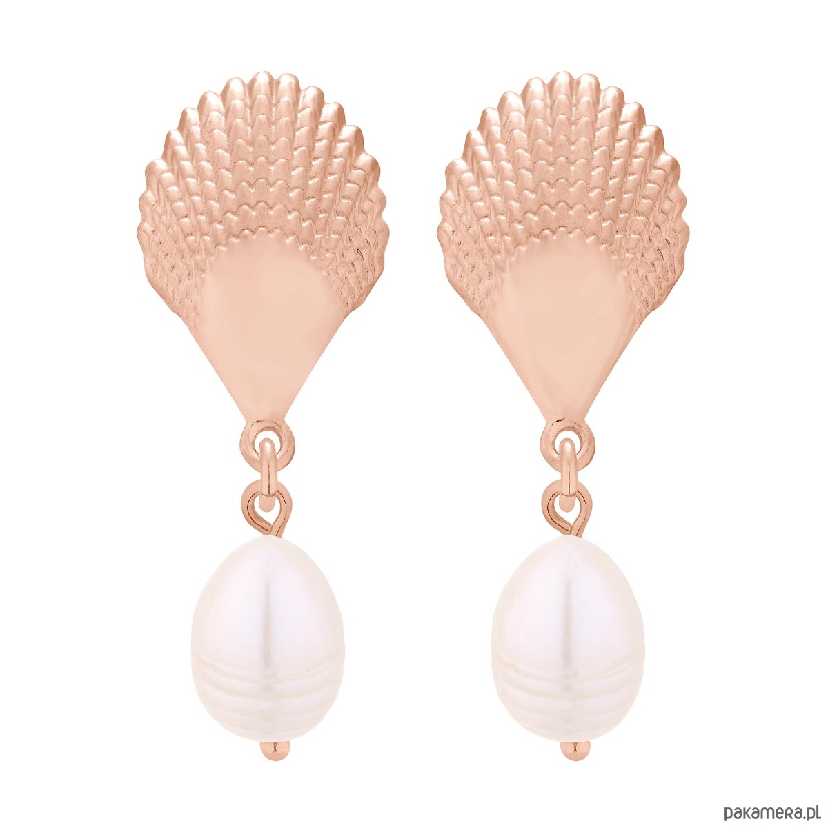 Kolczyki z różowego złota z muszlami i perłami naturalnymi
