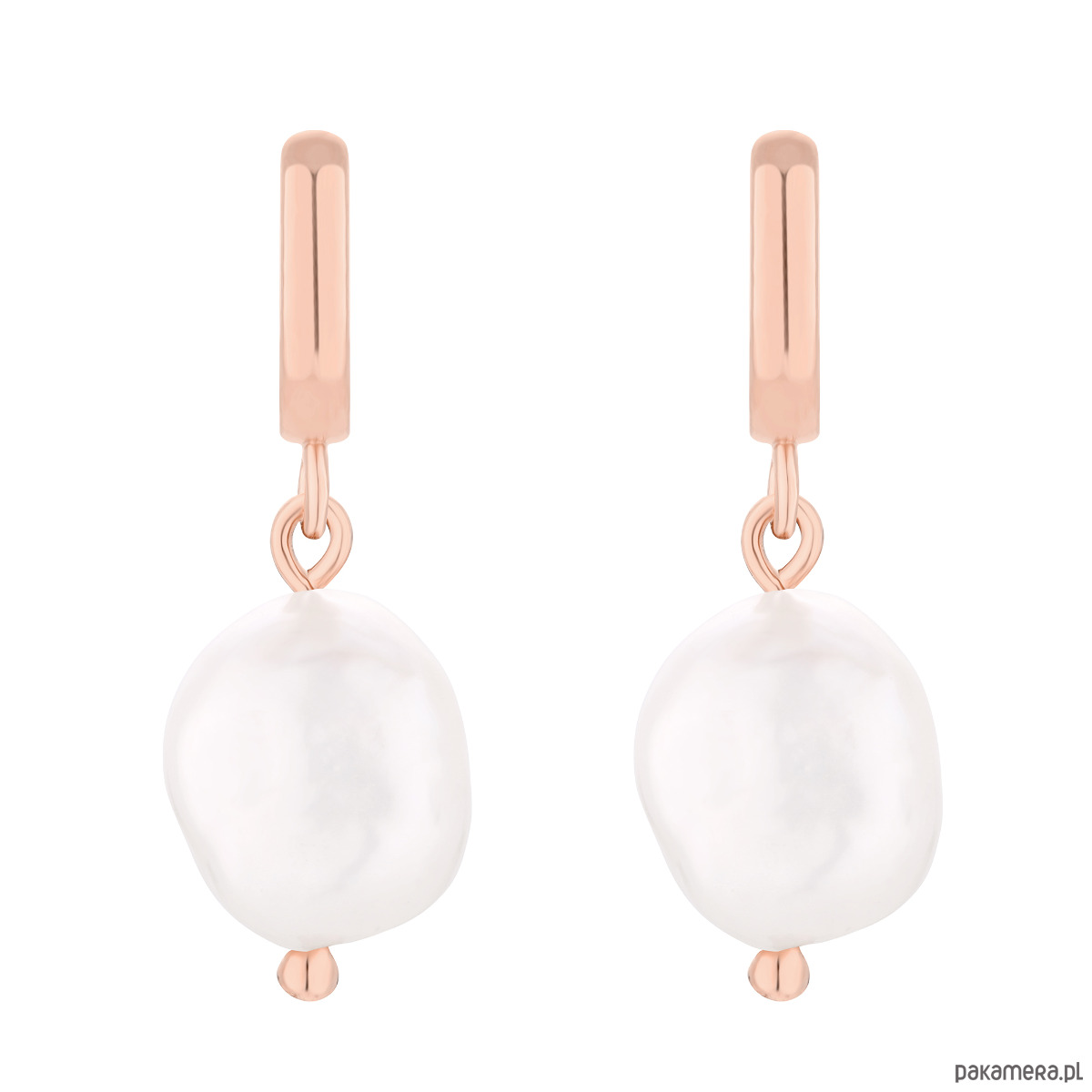 Złote kolczyki z perłami naturalnymi. Całość wykonana ze srebra 925 powlekanego 18 karatowym różowym złotem.