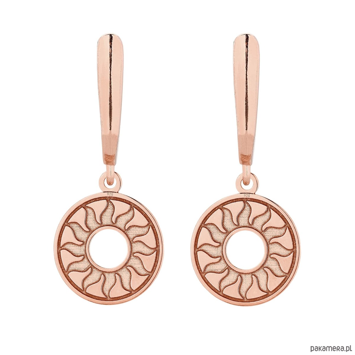Złote kolczyki ze słoneczkami. Zapinane na bigle angielskie. Całość wykonana ze srebra 925 powlekanego 18 karatowym różowym złotem.