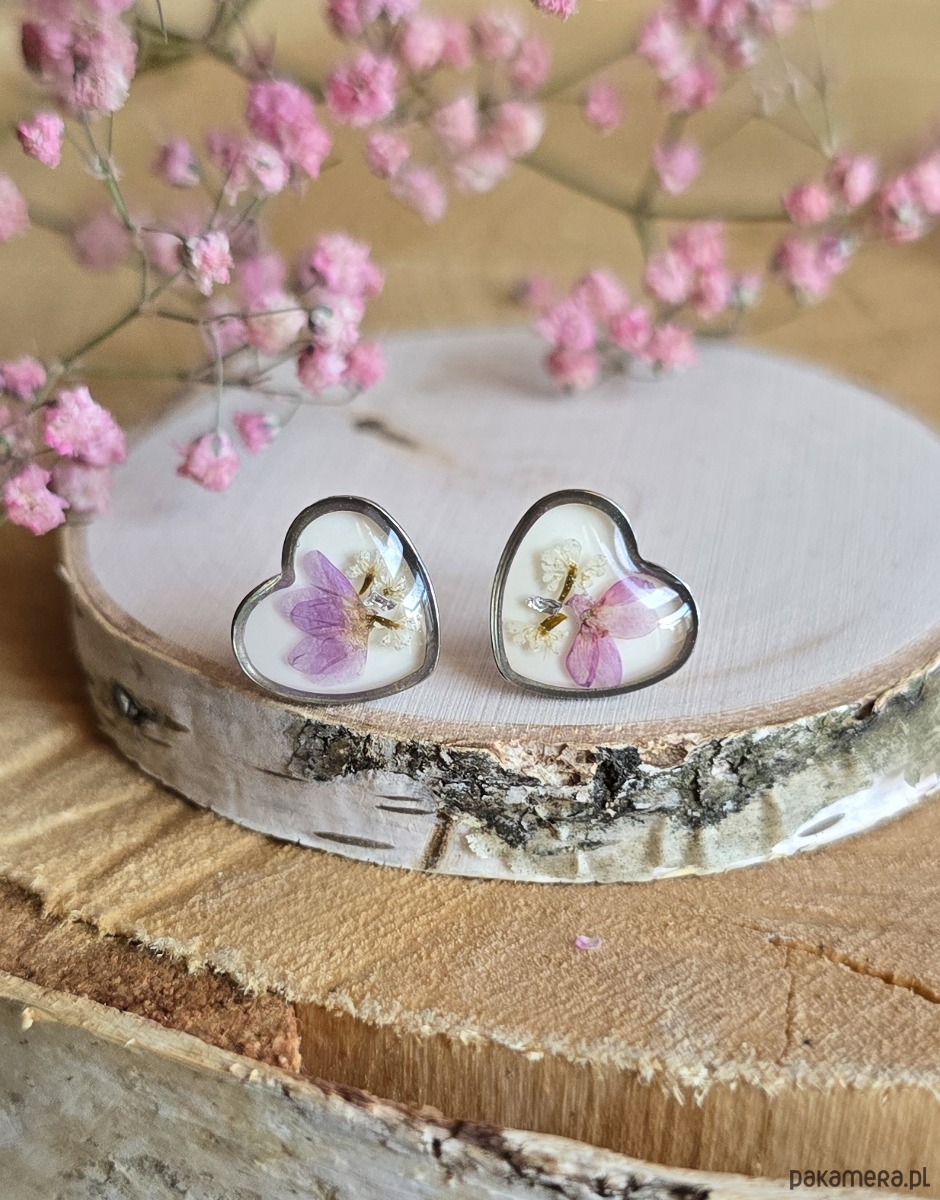 Oferuję Państwu unikalną biżuterię. Kolczyki są wykonane z suszonych kwiatów i żywicy epoksydowej. Biżuteria jest wspaniałym i oryginalnym prezentem na lata.