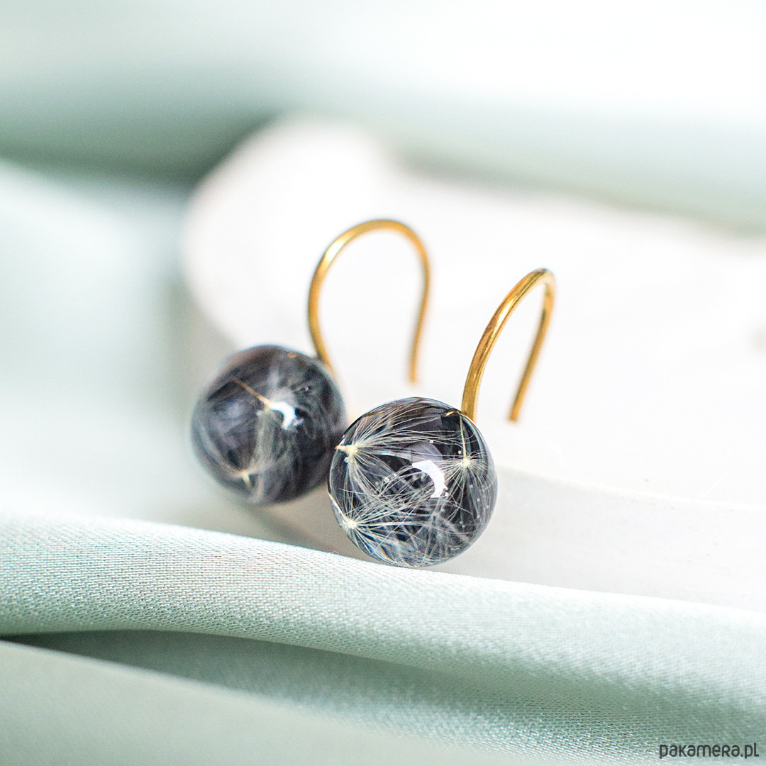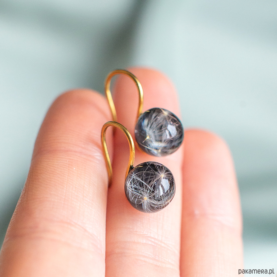 Kolczyki wykonany jest z żywicy epoksydowej z wykorzystaniem suszonych kwiatów. Metalowe elementy to stal nierdzewna szlachetna chirurgiczna.