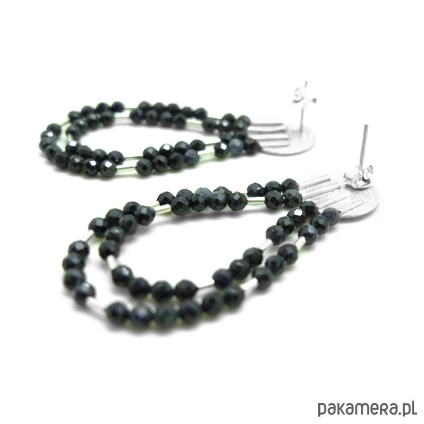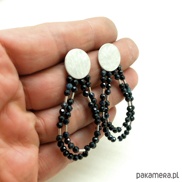 Piękne efektowne kolczyki wykonane ze srebra i naturalnych szafirów. Wiszące kolczyki są długie na ok. 5 cm.Wykonane ręcznie kolczyki sztyfty zaopatrzone są w niezawodne srebrne zapięcia.