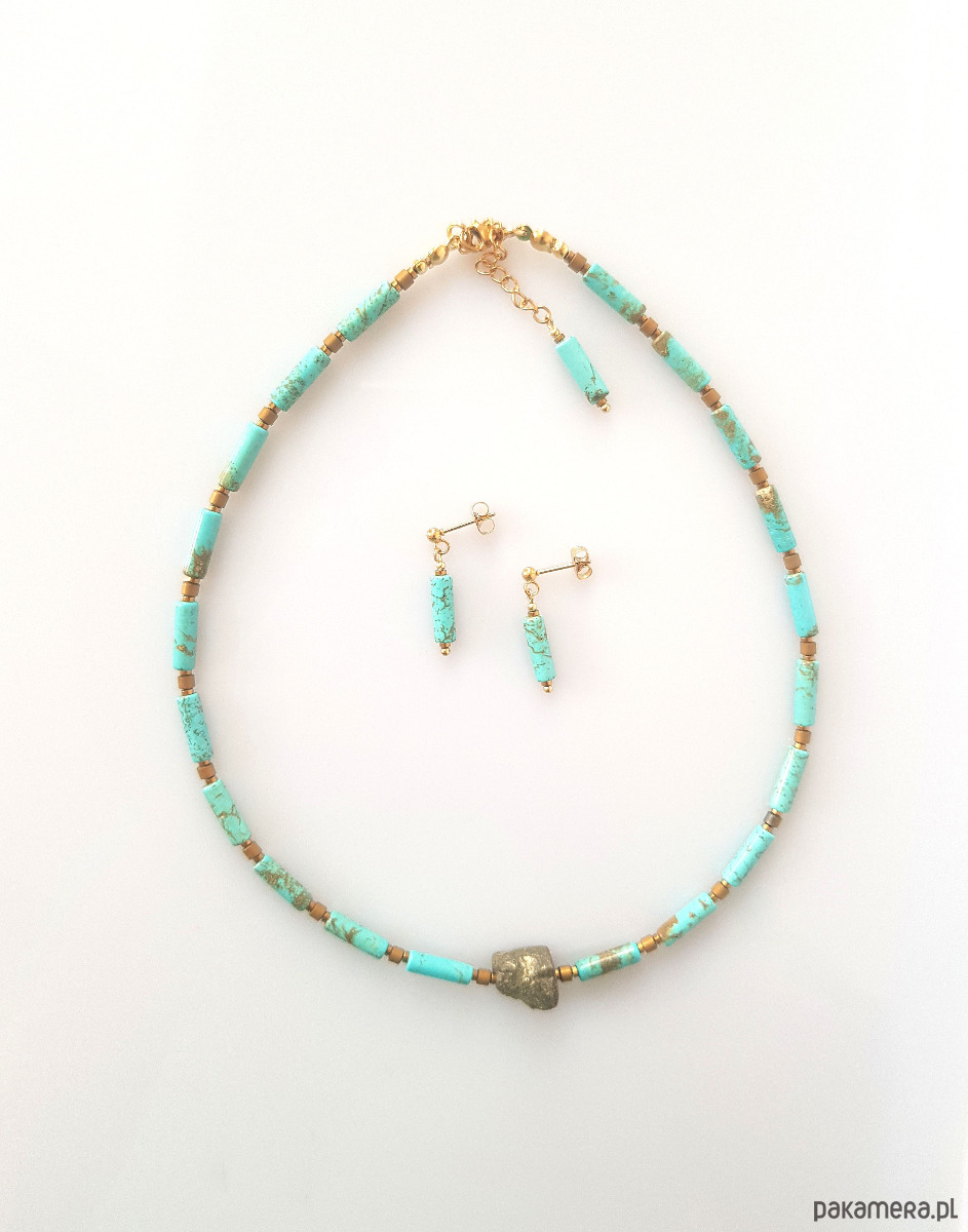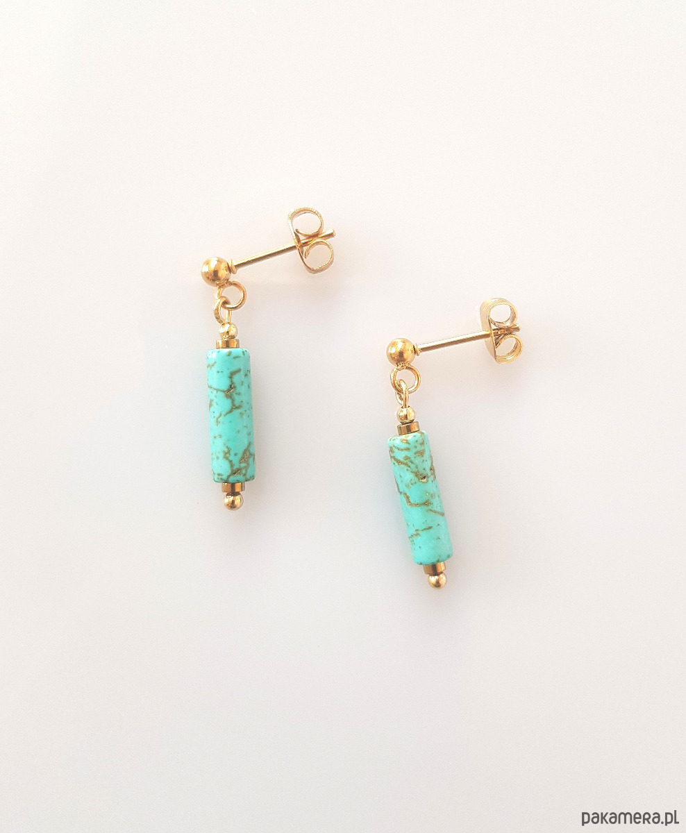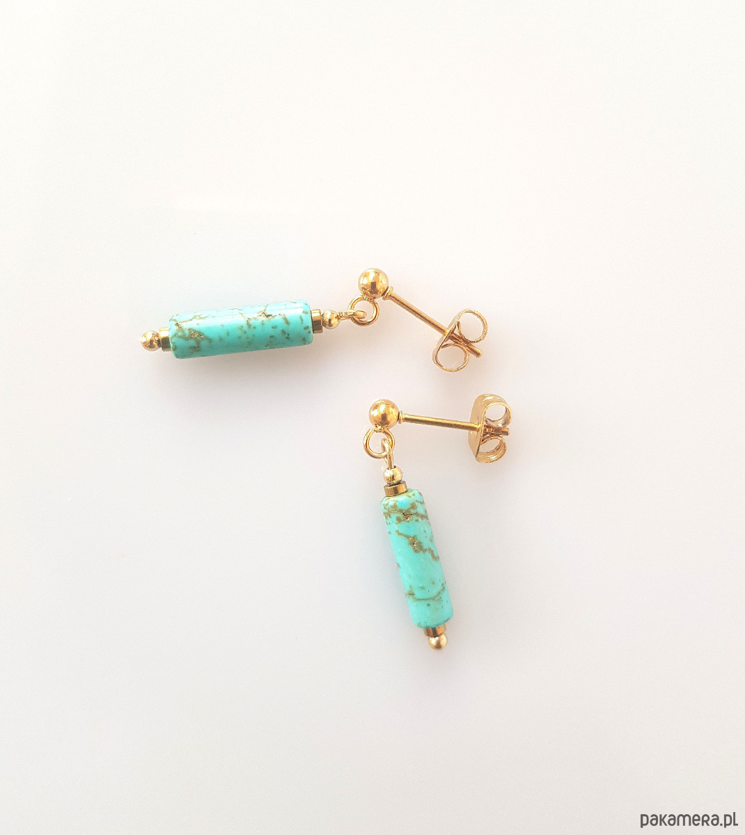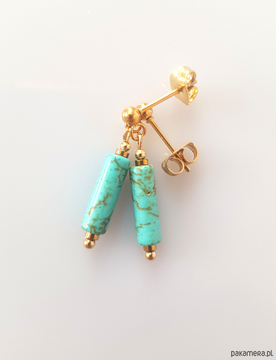 Drobny plasterek złotego hematyt i słupek turkusowego jaspisu.