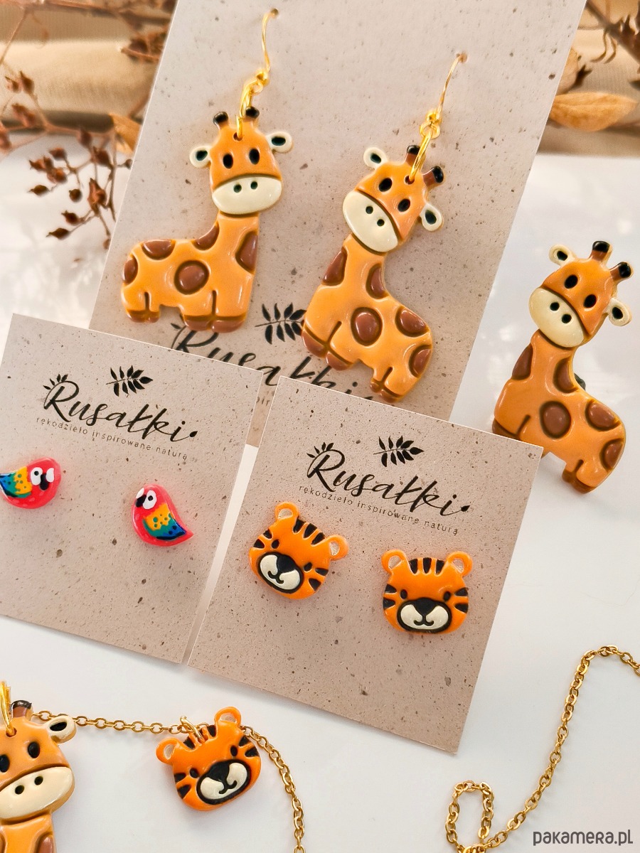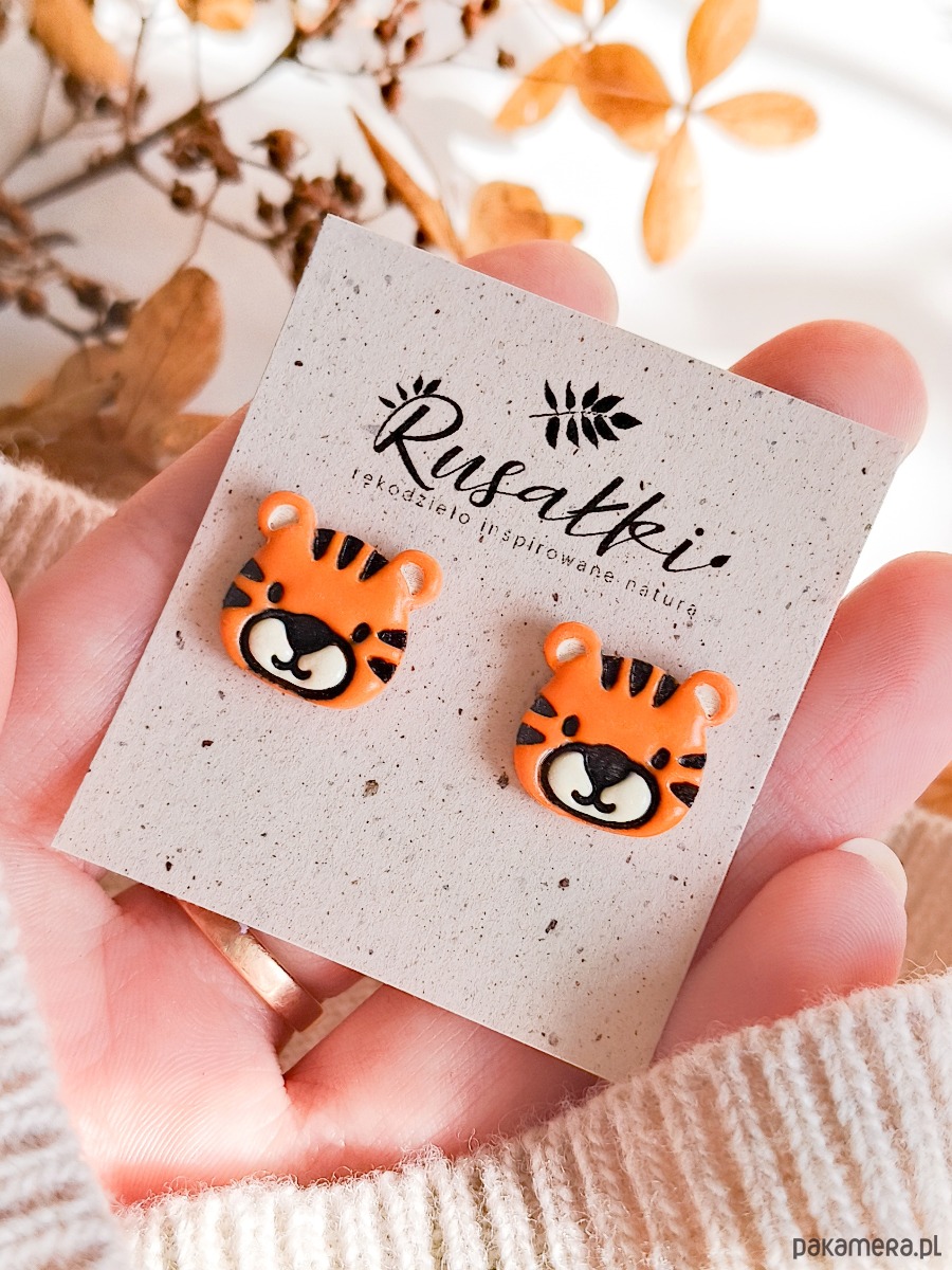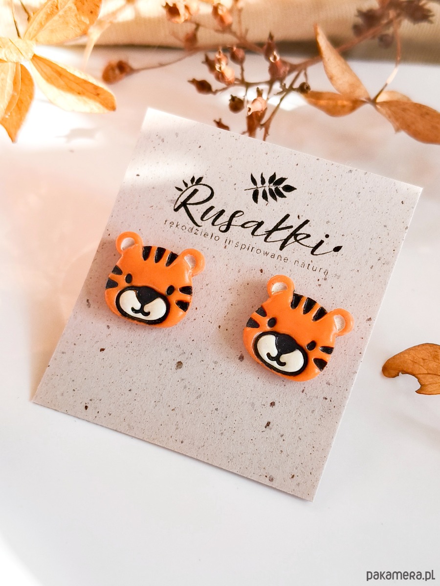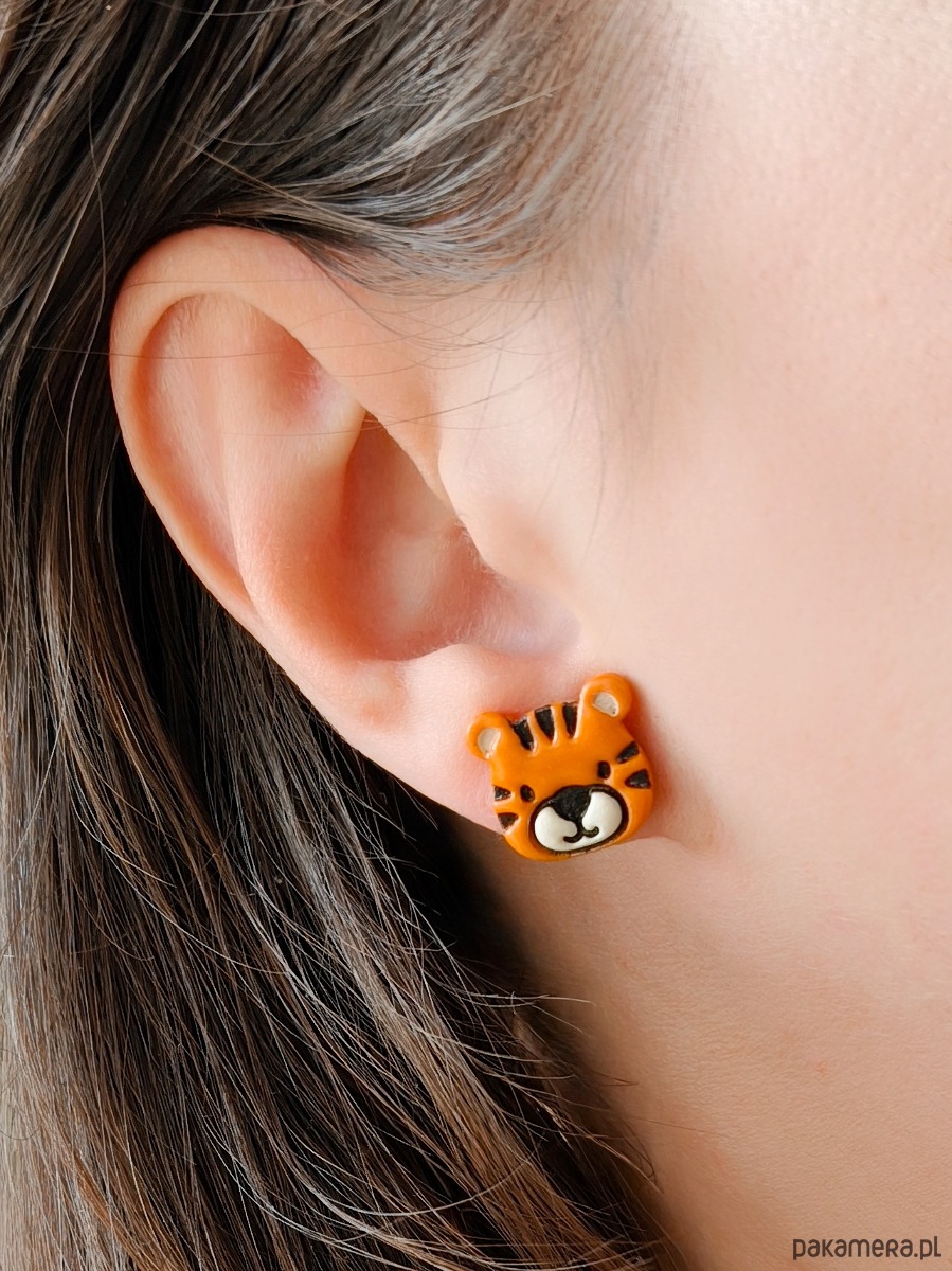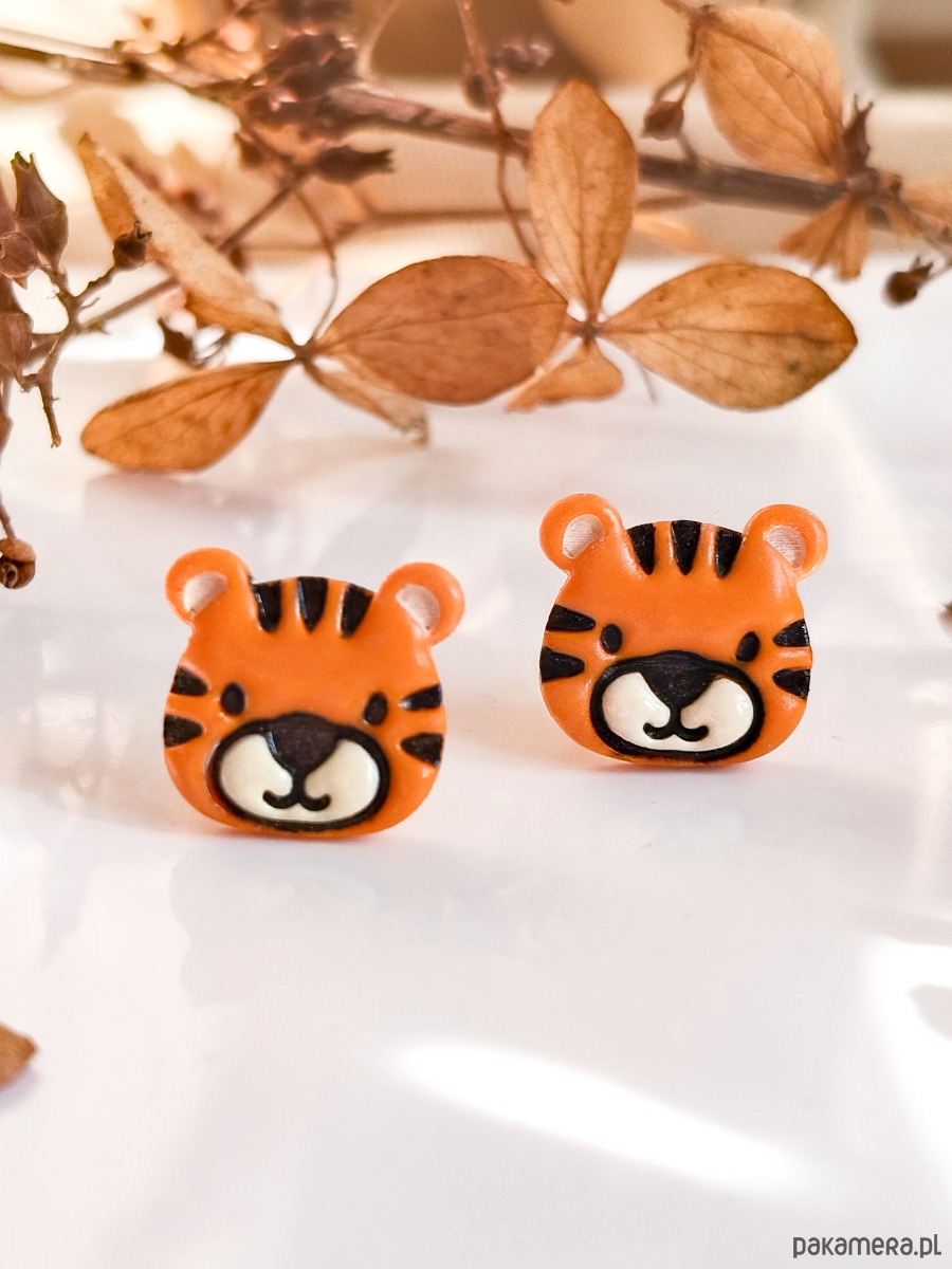 Kolczyki z tygrysem, biżuteria z egzotycznymi zwierzętami, prezent dla niej