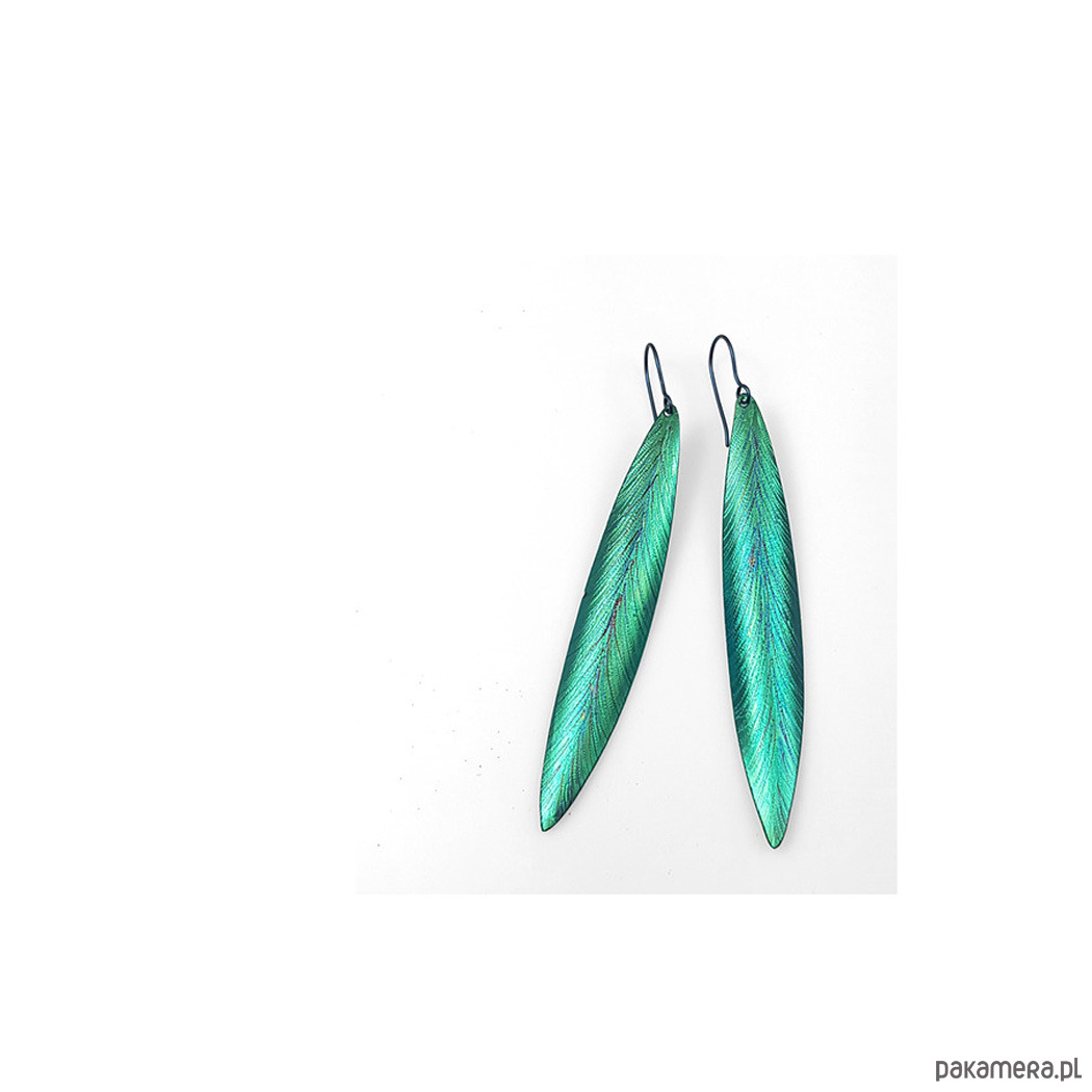 Kolczyki w całości wykonane z oksydowanego tytanu.Kolczyki razem z tytanowymi zawieszkami mają długość 10 cm i szerokość 1,4 cm. Na odwrocie opatrzone wygrawerowanym autografem.Tytan jest niezwykle lekkim i trwałym metalem który nie wywołuje żadnych alergii-jest hipoalergiczny-stosowany w chirurgii i stomatologii. Odporny na działanie chemikaliów.