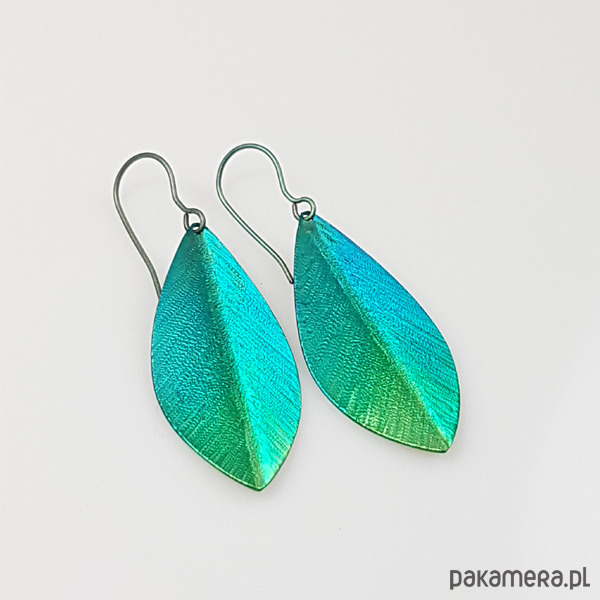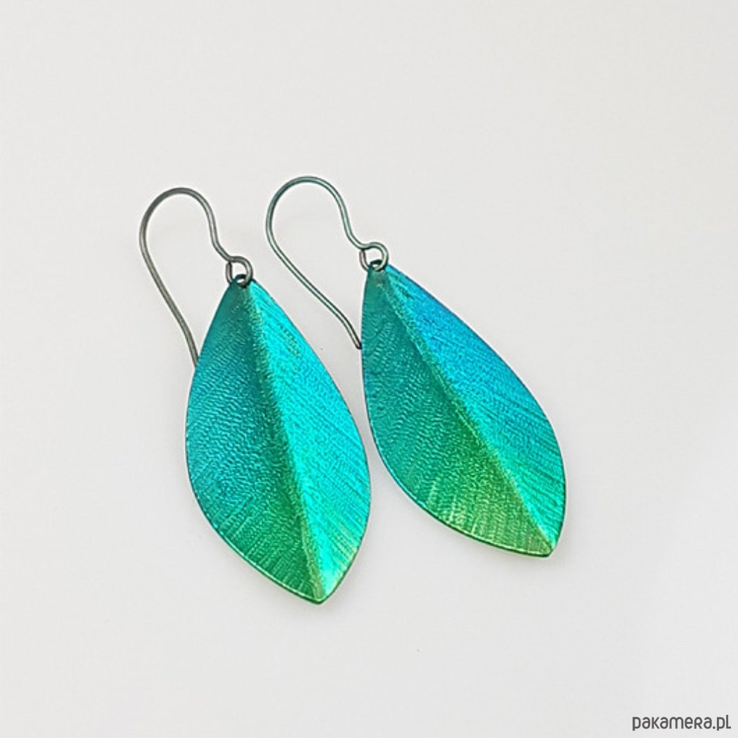 Kolczyki w całości wykonane z oksydowanego tytanu.Kolczyki razem z tytanowymi zawieszkami mają długość 5,5 cm i szerokość 2 cm. Na odwrocie opatrzone wygrawerowanym autografem.Tytan jest niezwykle lekkim i trwałym metalem który nie wywołuje żadnych alergii-jest hipoalergiczny-stosowany w chirurgii i stomatologii. Odporny na działanie chemikaliów.