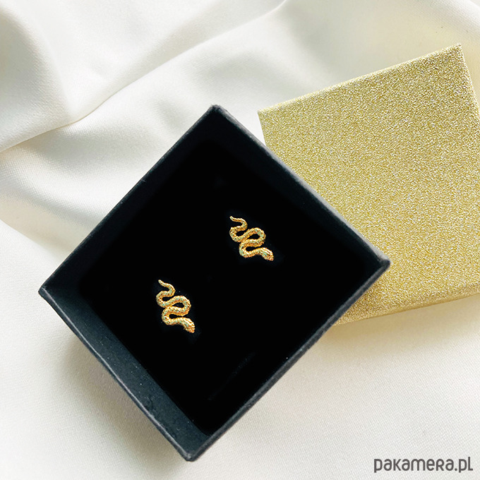 Piękne złocone kolczyki z wyjątkowymi małymi wężami. Kolczyki są lekkie i wygodne w noszeniu. Wykonane ze srebra próby 925 i złocone 24 k złotem.