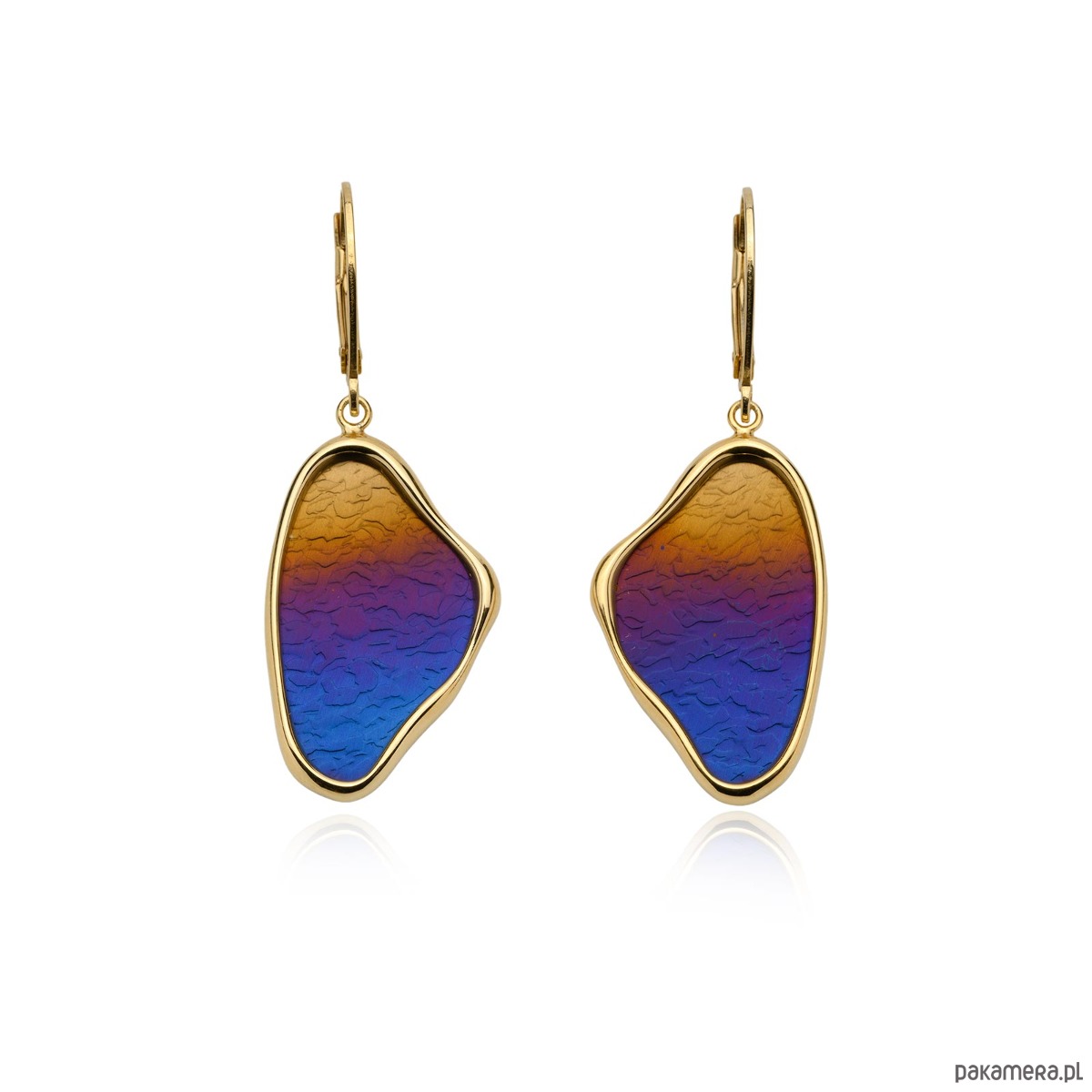 Kolczyki z wielobarwnym tytanem - srebrne 925, pozłacane