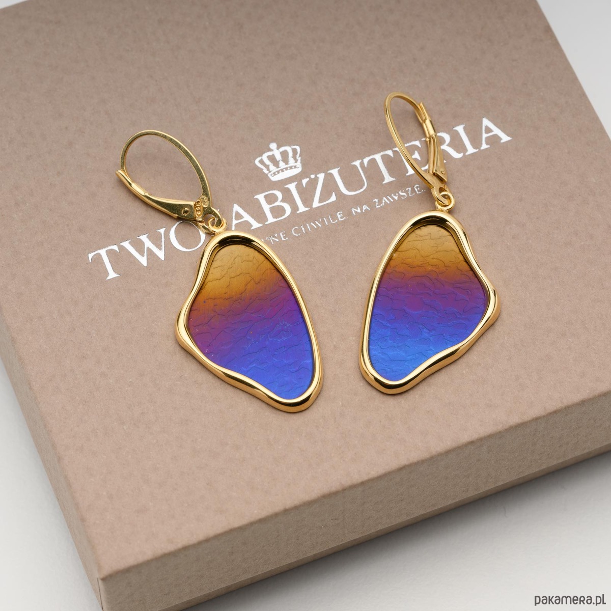 Wyjątkowe kolczyki ze srebra 925 pozłacanego z tytanem w kolorze od cienego szafiru do żóltego