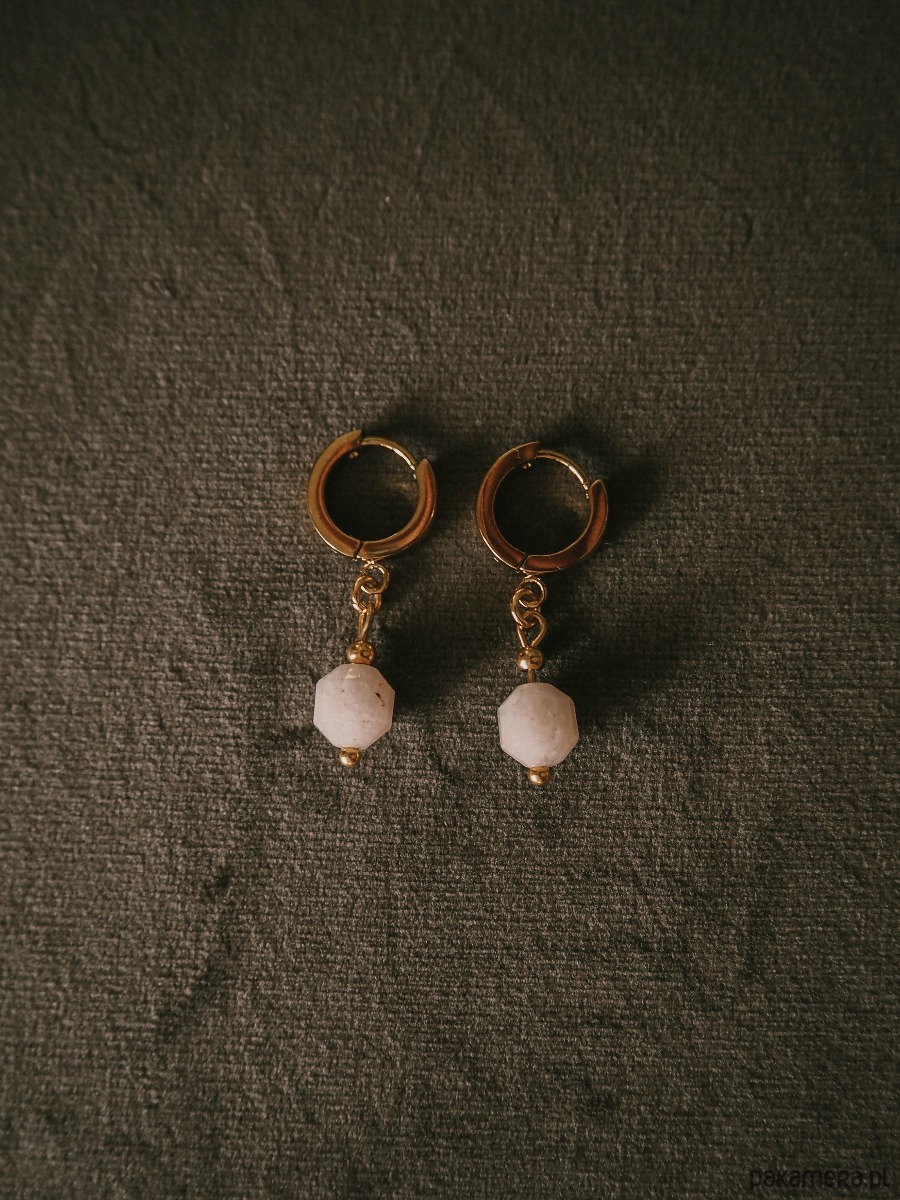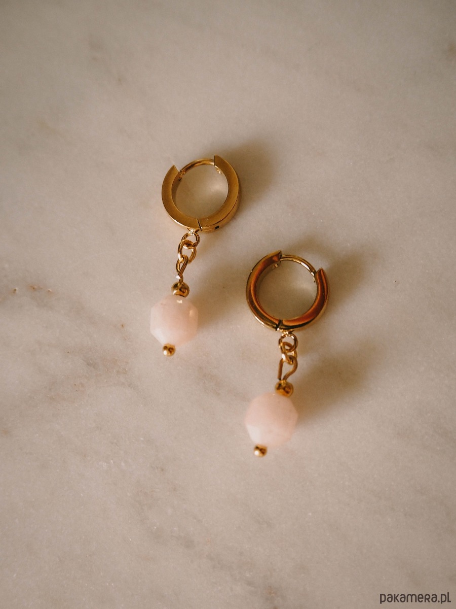Kolczyki ze stali szlachetnej z zawieszką z naturalnego kamienia różowy kwarc - kamienia miłości.