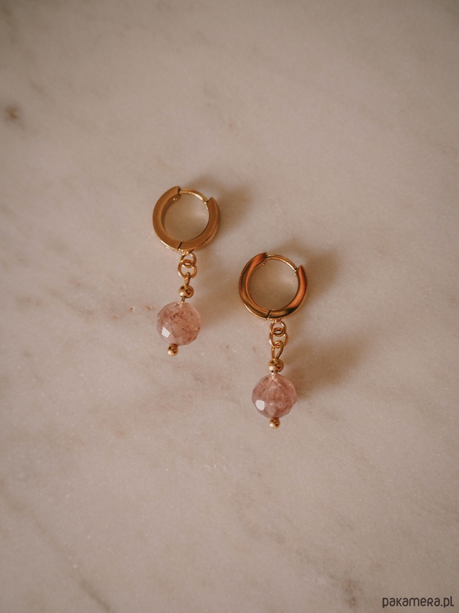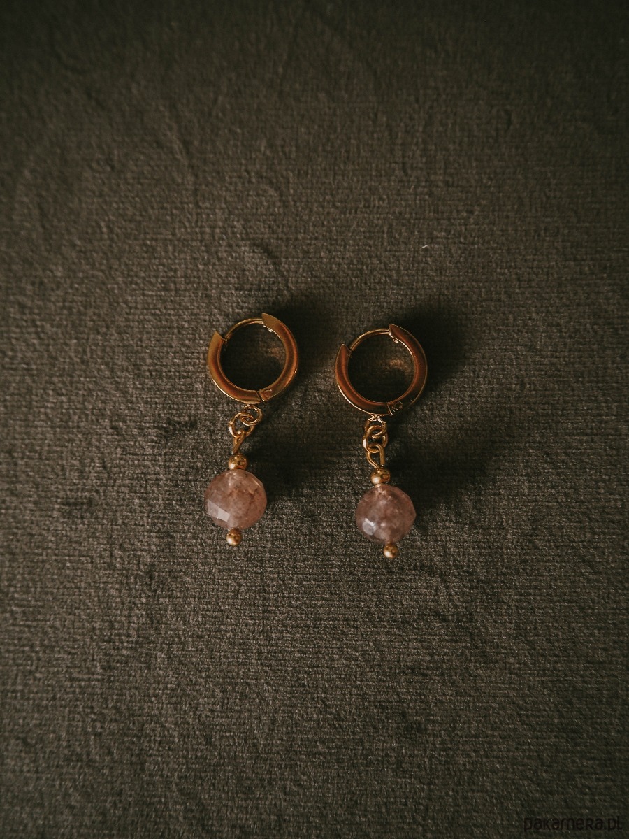 Kolczyki ze stali szlachetnej z zawieszką z naturalnego kamienia kwarc truskawkowy - kamienia spokoju.