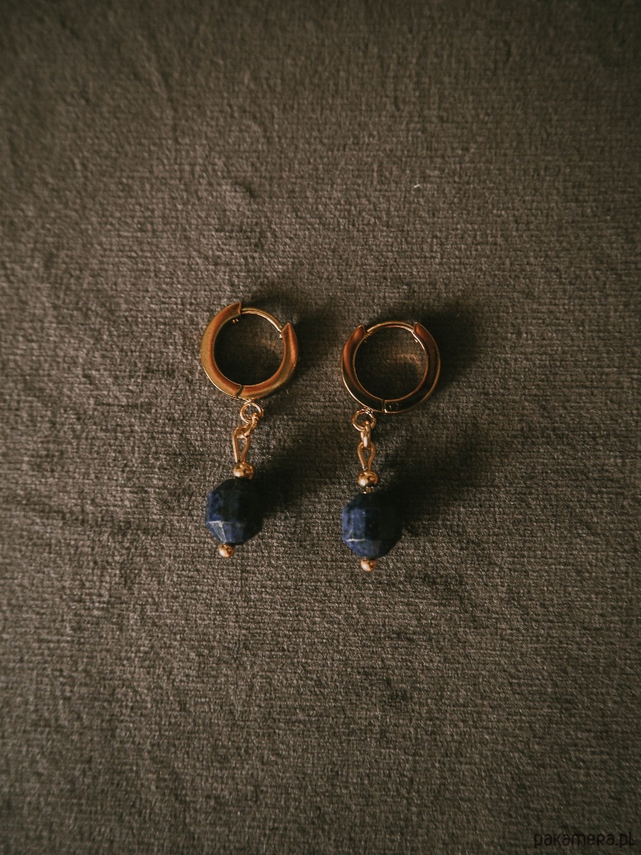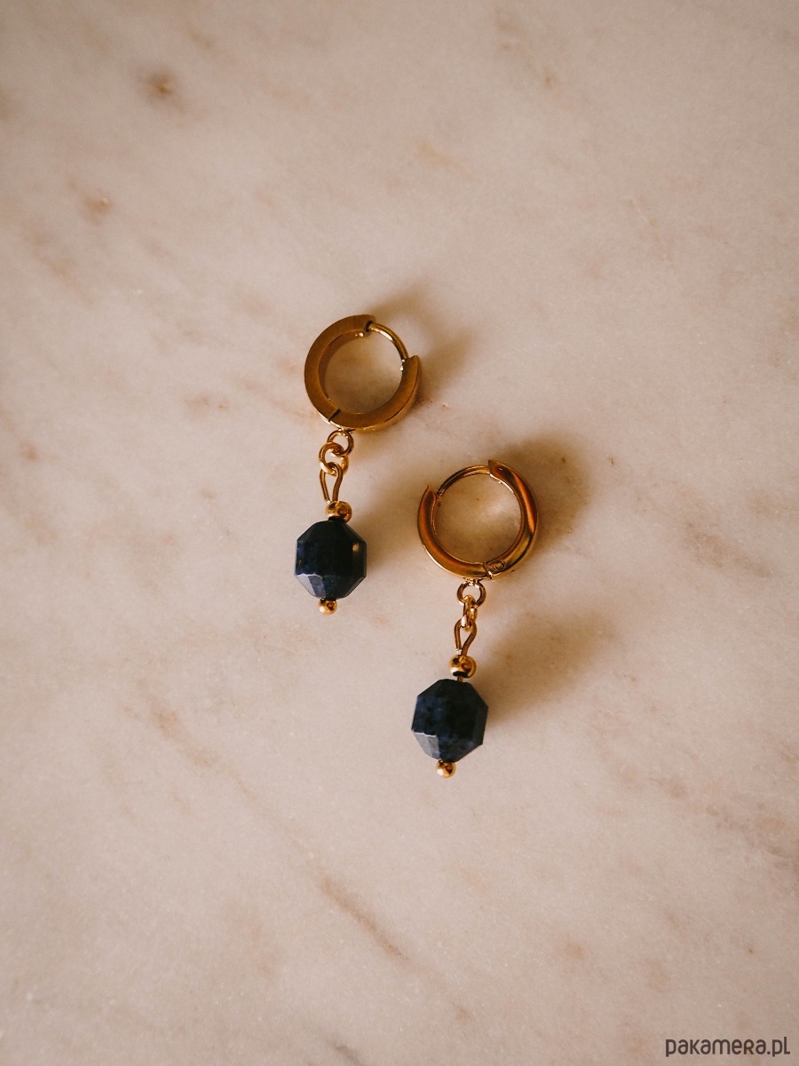 Kolczyki ze stali szlachetnej z zawieszką z naturalnego kamienia lapis lazuli - kamienia mądrości.