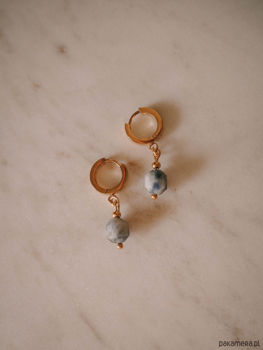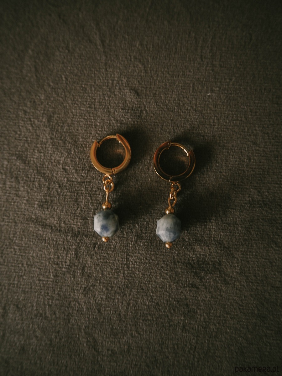 Kolczyki ze stali szlachetnej z zawieszką z naturalnego kamienia sodalit - kamienia spokoju.