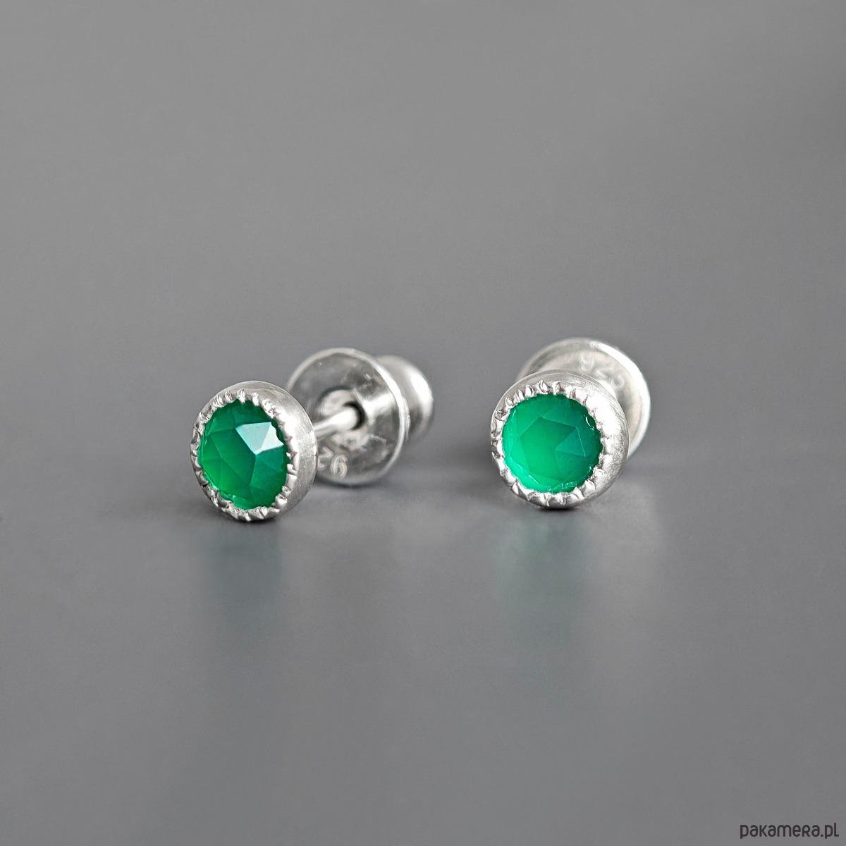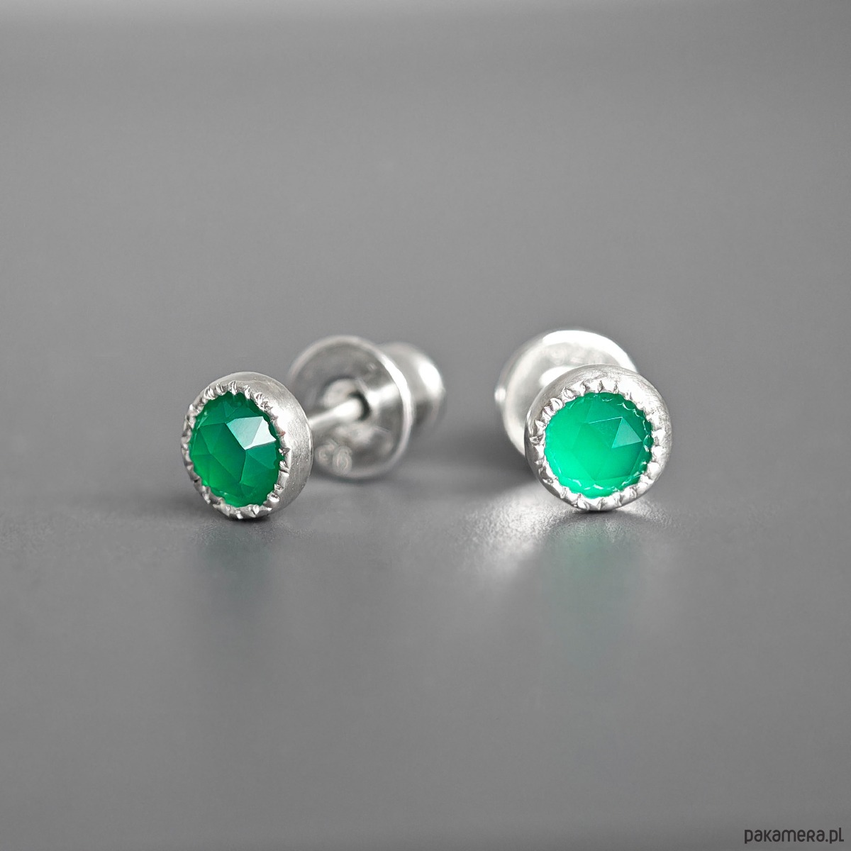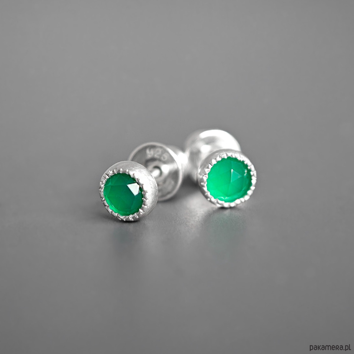 Unikatowe maleńkie kolczyki wykonane ze srebra 925 z fasetowanymi zielonymi agatami.