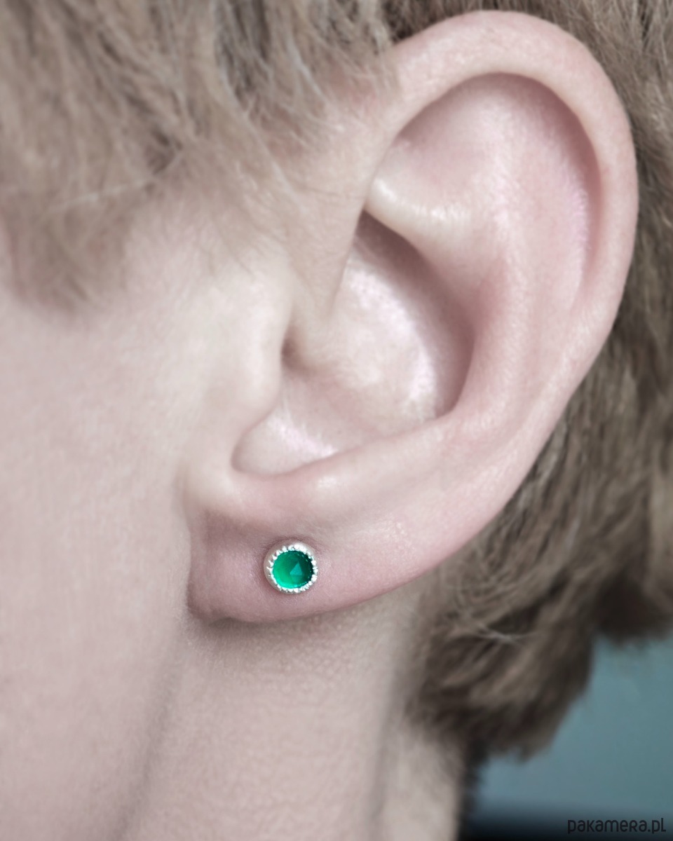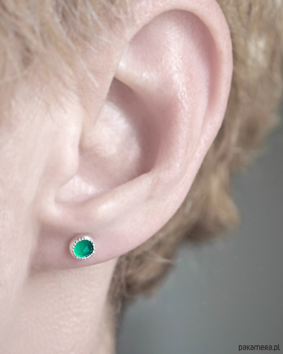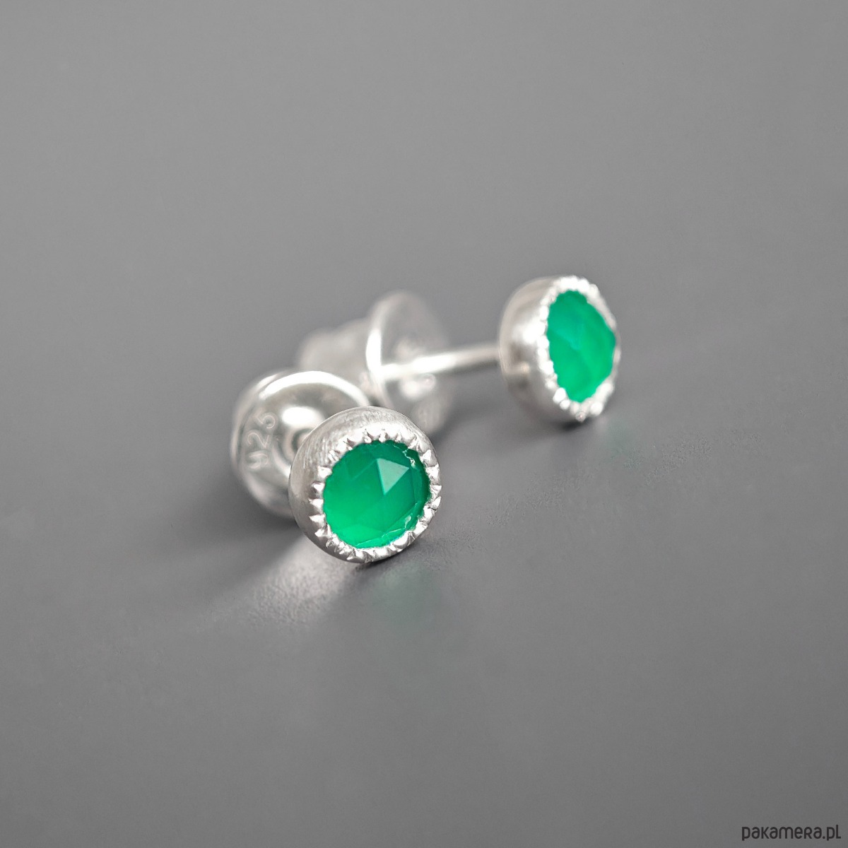 Unikatowe maleńkie kolczyki wykonane ze srebra 925 z fasetowanymi zielonymi agatami.