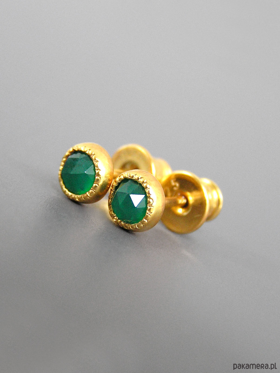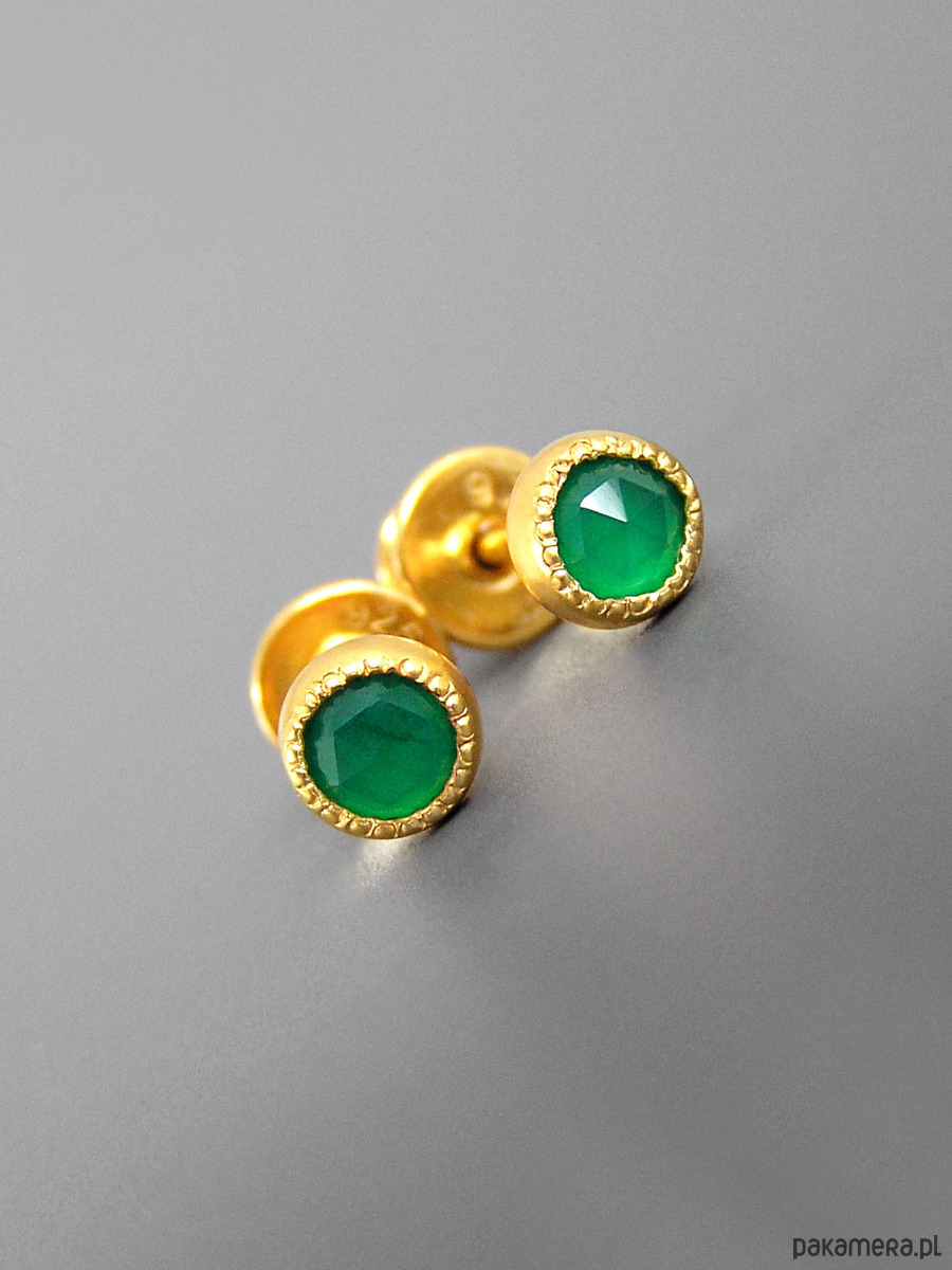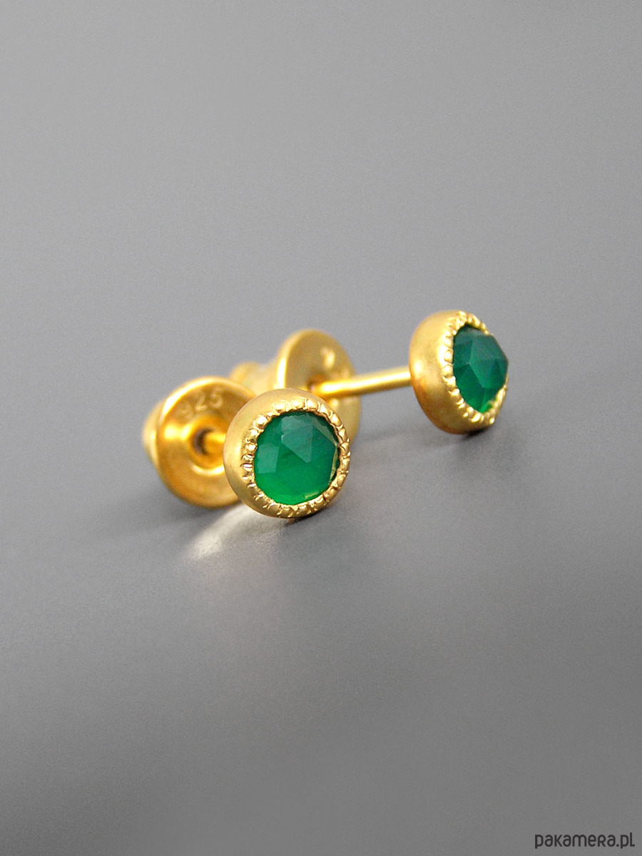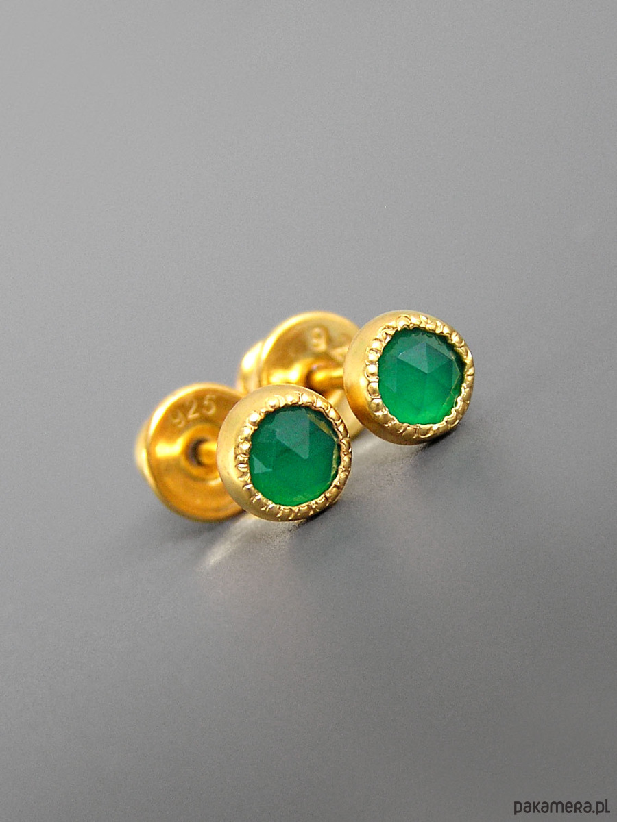 Unikatowe maleńkie kolczyki wykonane ze srebra 925 z fasetowanymi zielonymi agatami.