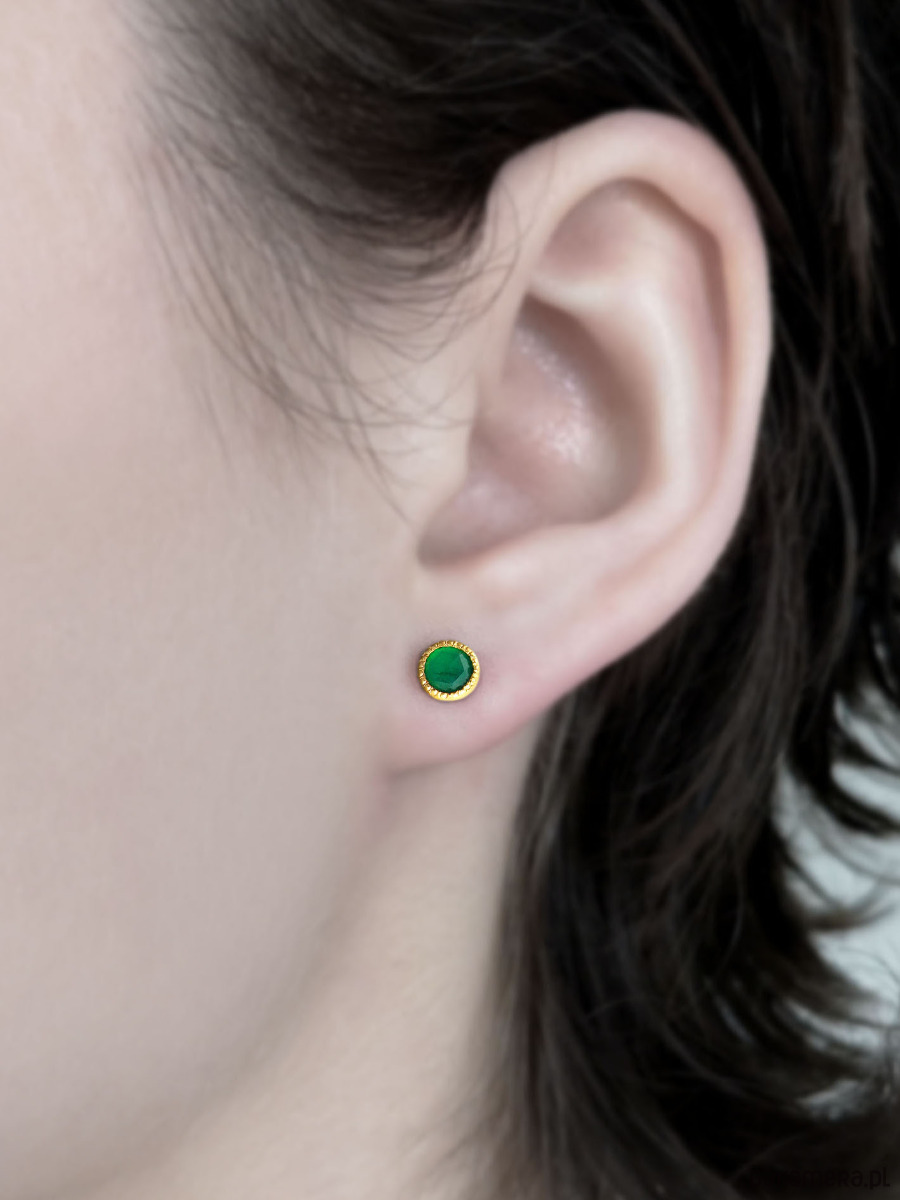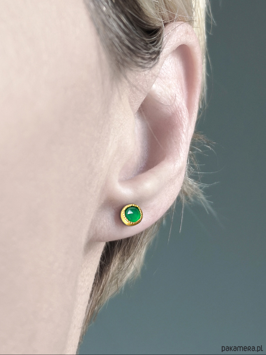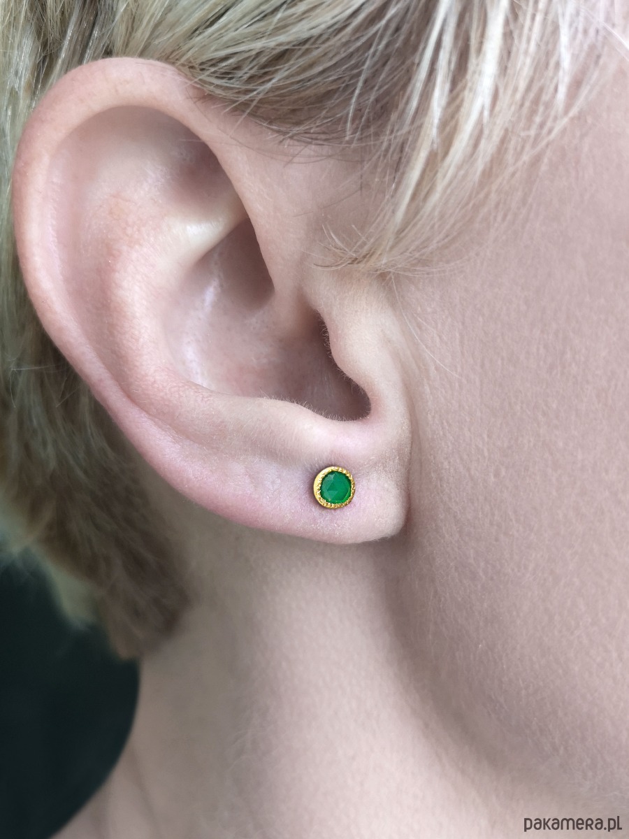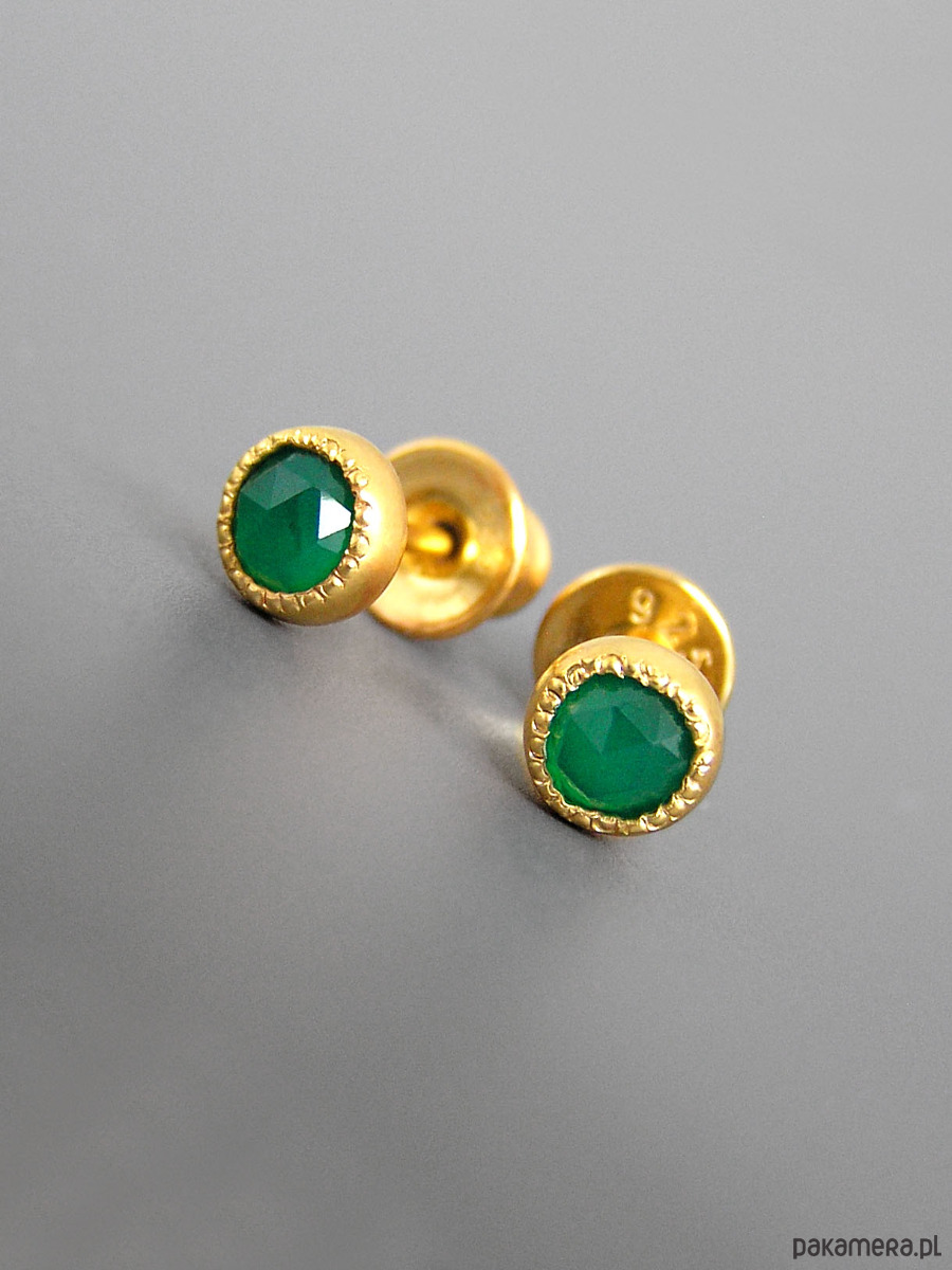Unikatowe maleńkie kolczyki wykonane ze srebra 925 z fasetowanymi zielonymi agatami.