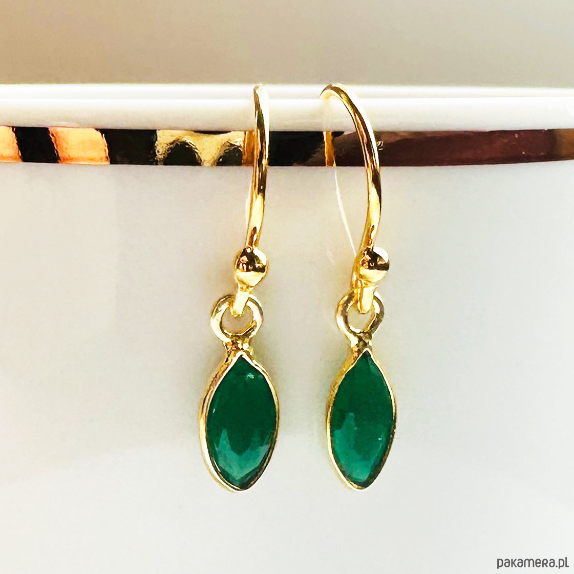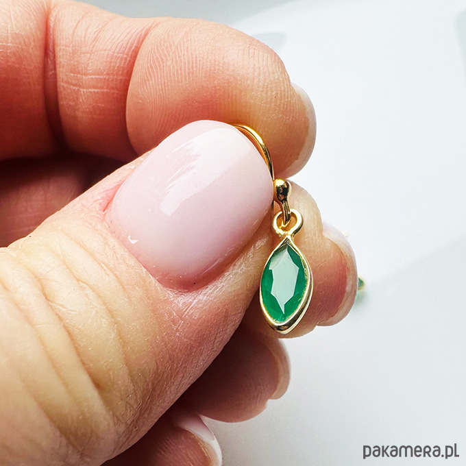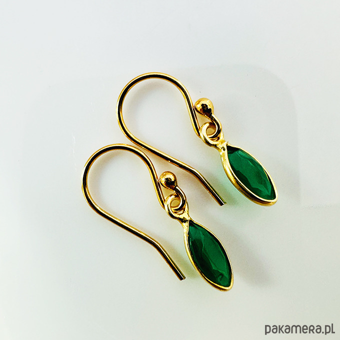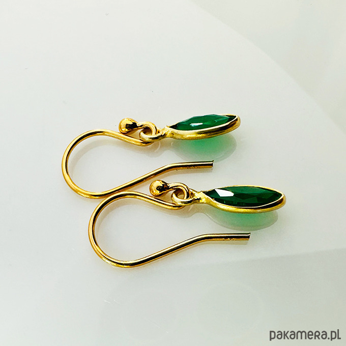 Delikatne śliczne kolczyki z oprawionymi w pozłacane srebro zielonymi kamieniami- onyks.