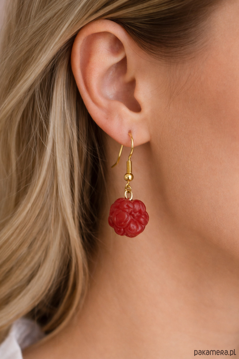 Oryginalne kolczyki w kształcie soczystych malin, wykonane ręcznie z dbałością o detale. Intensywny czerwony kolor i realistyczna forma sprawiają, że przyciągają wzrok i dodają stylizacji wyjątkowego charakteru.