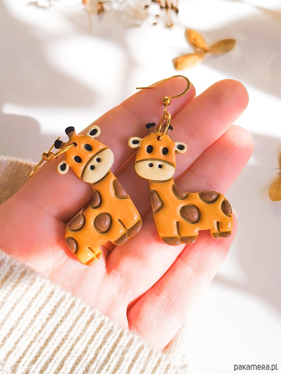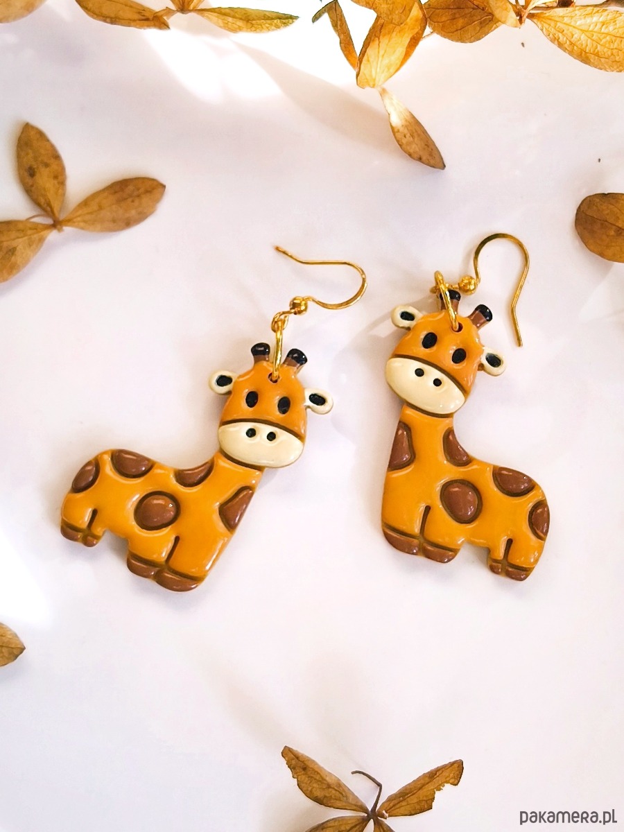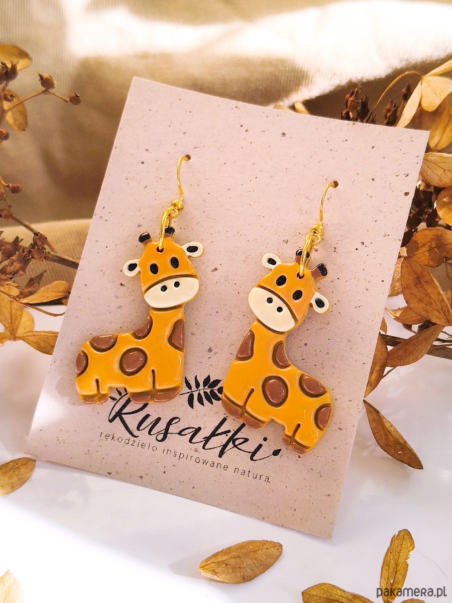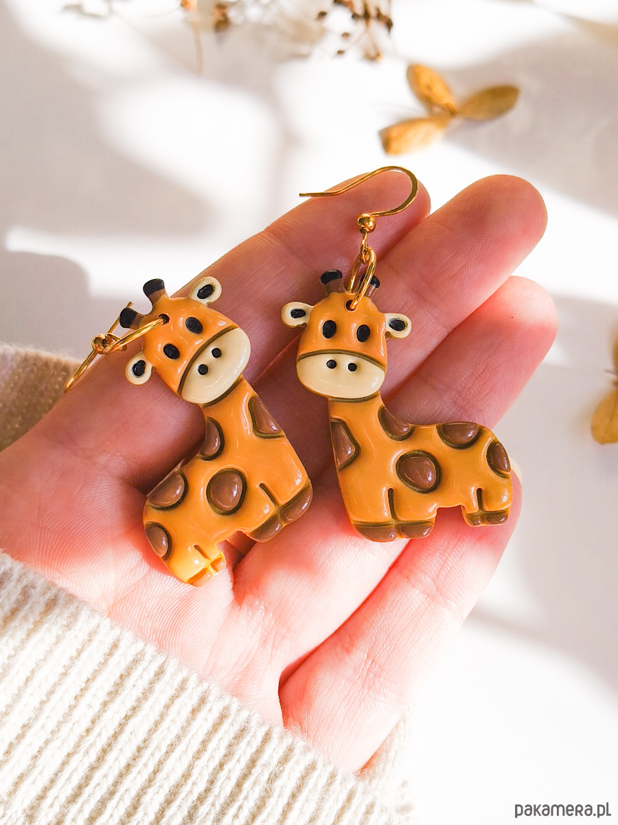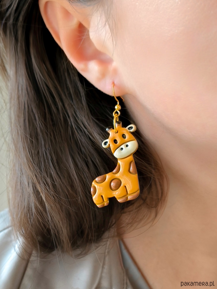 Kolczyki z żyrafami, akcesoria dla pracownika zoo, zwierzęta z afryki