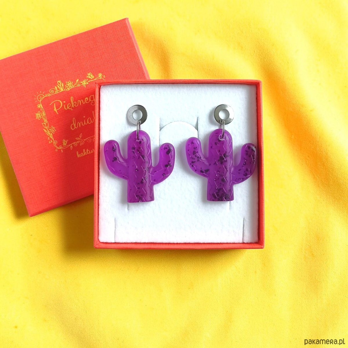 Kolczyki z żywicy : KAKTUSY : fioletowe