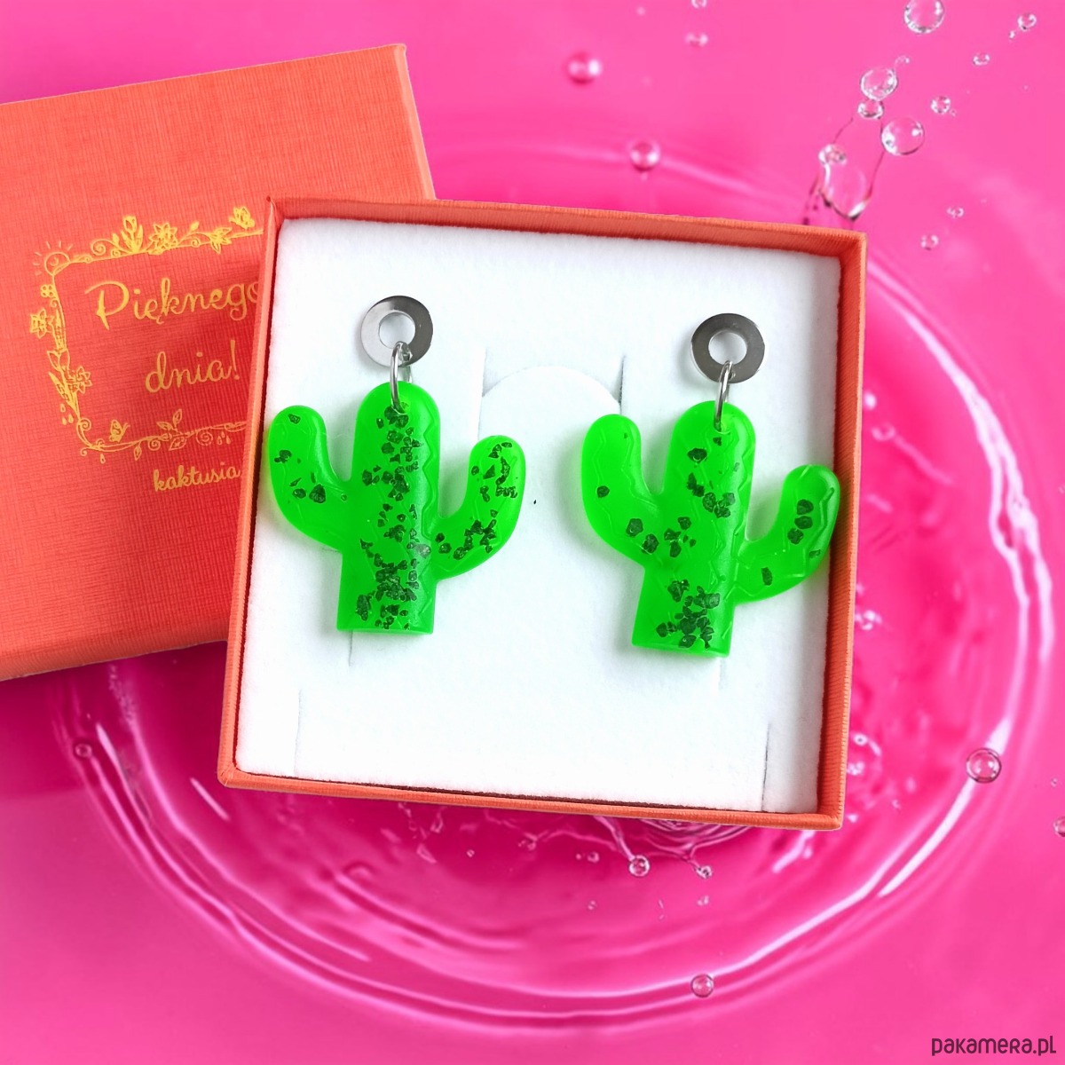 Kolczyki z żywicy : KAKTUSY : neon green