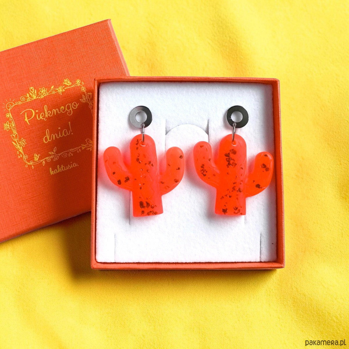 Kolczyki z żywicy : KAKTUSY : neon orange