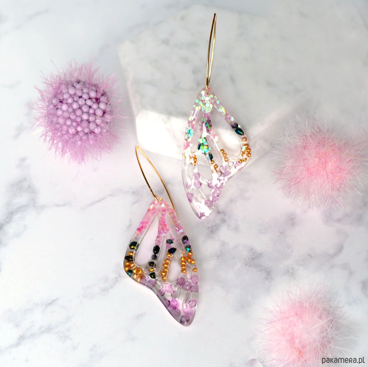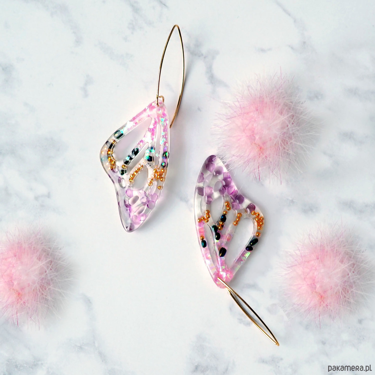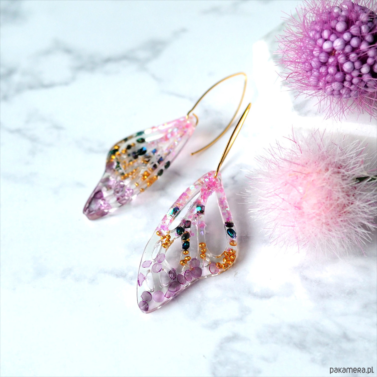 KOLCZYKI Z ŻYWICY różowe skrzydła motyla
