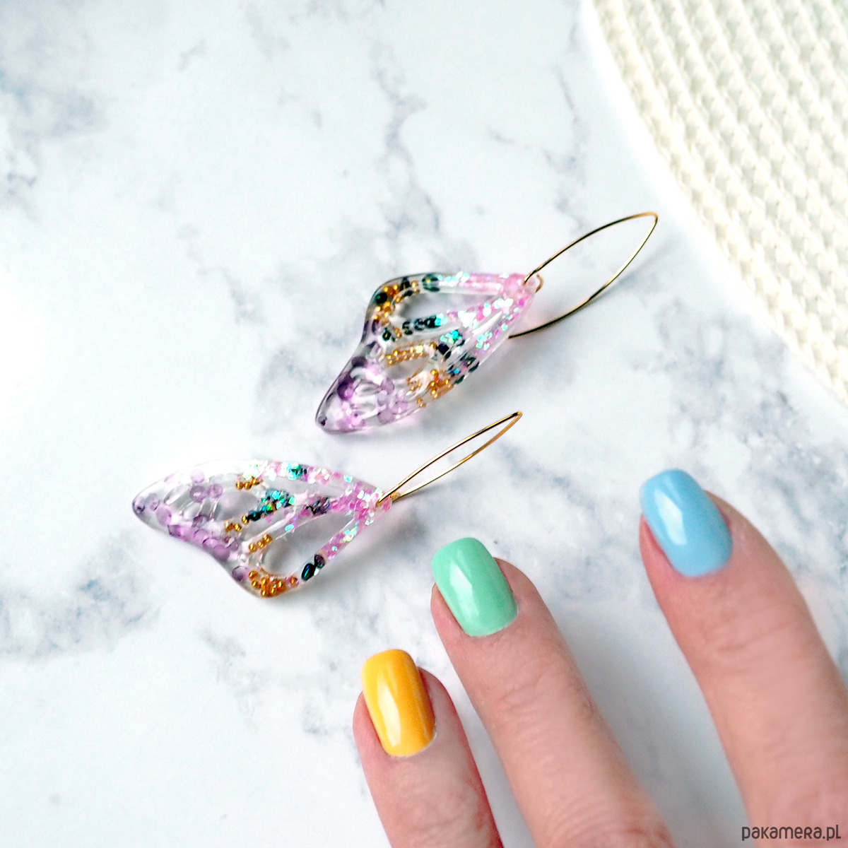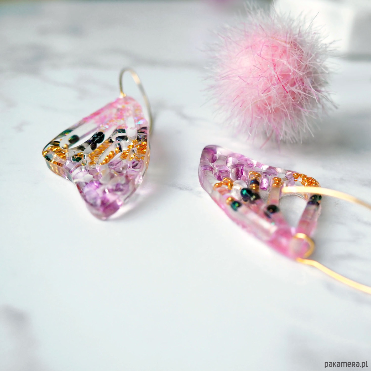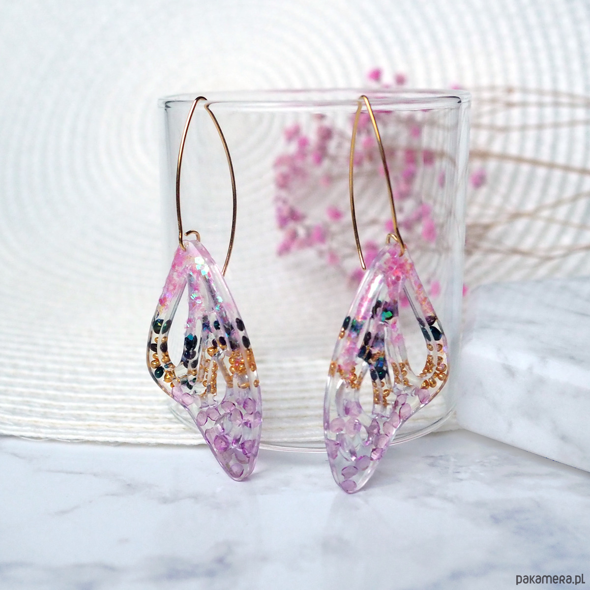 KOLCZYKI Z ŻYWICY różowe skrzydła motyla