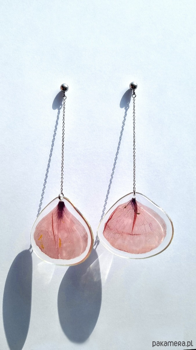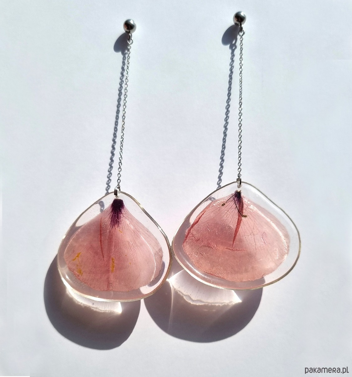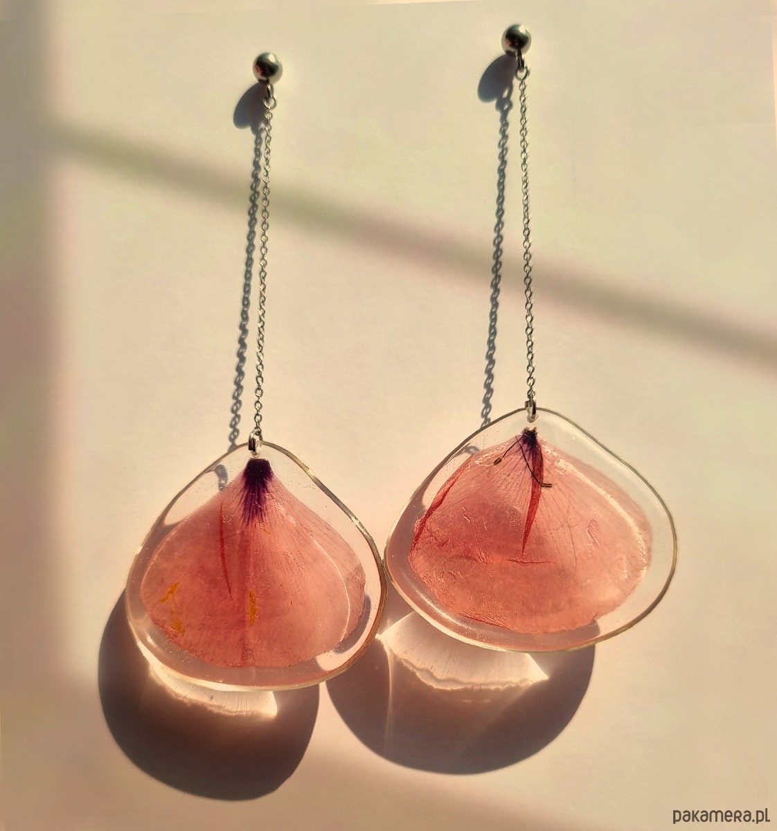 Te wiszące kolczyki powstały z połączenia delikatności natury i trwałości biżuterii. W krystalicznie przejrzystej żywicy zostały zamknięte prawdziwe kwiaty maku polnego – symbol lata, wolności i ulotności chwil. Dzięki temu możesz zatrzymać fragment natury na zawsze i nosić go zawsze przy sobie.