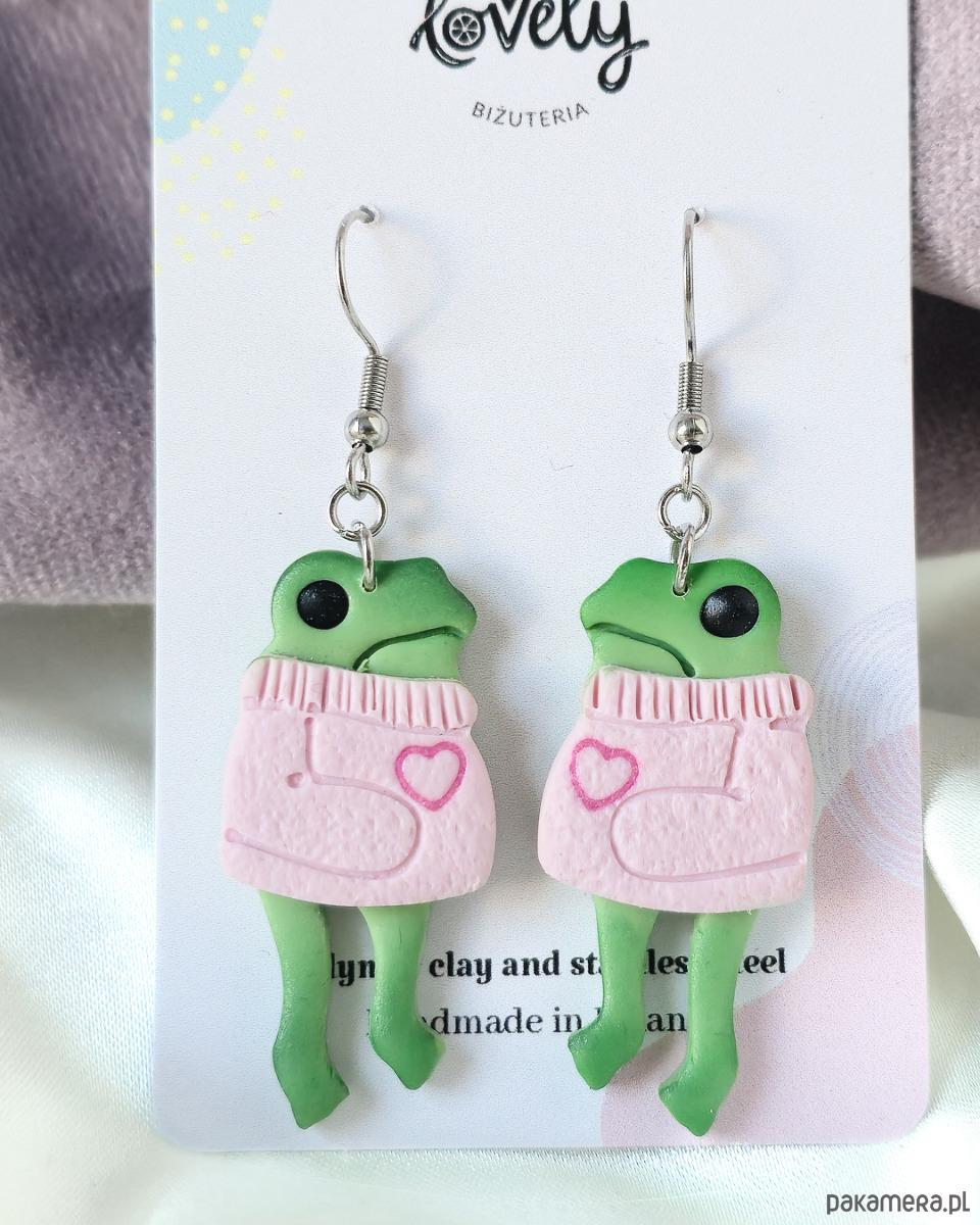 Kolczyki żaby w sweterkach