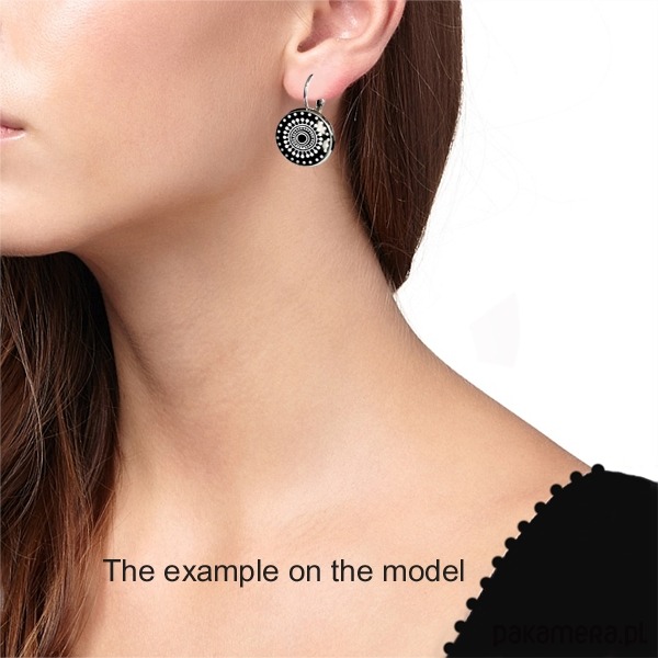 • Interesujące kolczyki zapinane, z grafiką artystyczną, zatopioną pod wypukłym szkiełkiem, dzięki któremu grafika nabiera trójwymiarowego wyrazu, w oprawie w kolorze srebrnym.
