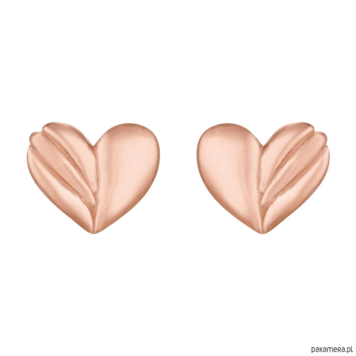 Złote kolczyki zdobione serduszka. Całość wykonana ze srebra 925 powlekanego 18 karatowym różowym złotem. Zapinane na sztyft. Kolczyki posiadają zapięcia (baranki).