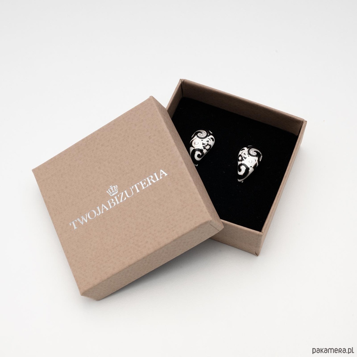 Stylowe kolczyki z czarno-białą emalią to wyjątkowa biżuteria, która zachwyca ponadczasowym połączeniem kontrastowych barw. Delikatne kolczyki ozdobione czarną i białą emalią z cyrkoniami tworzy harmonijną, a zarazem wyrazistą kompozycję, podkreślając elegancję i indywidualny styl.