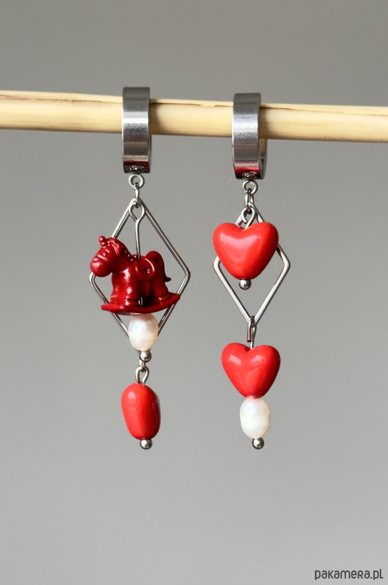 Cały metal to stal nierdzewna (hipoalergiczna, nie ciemnieje).