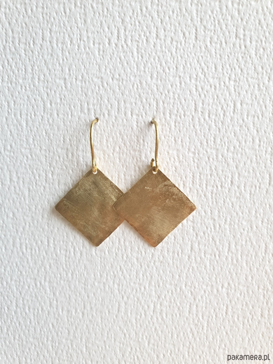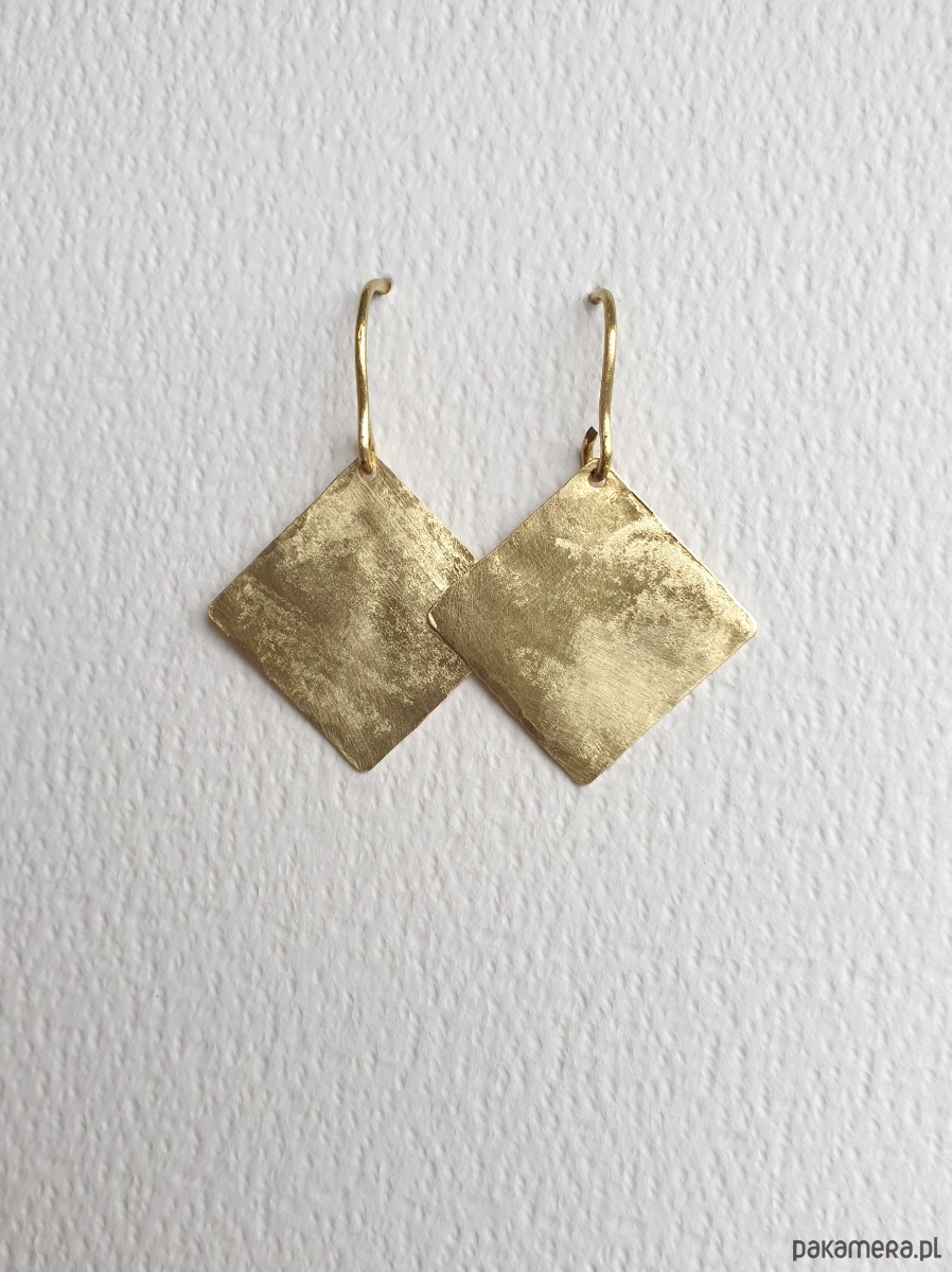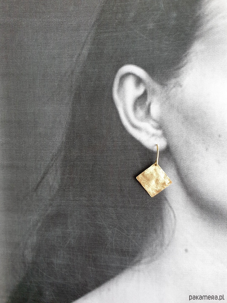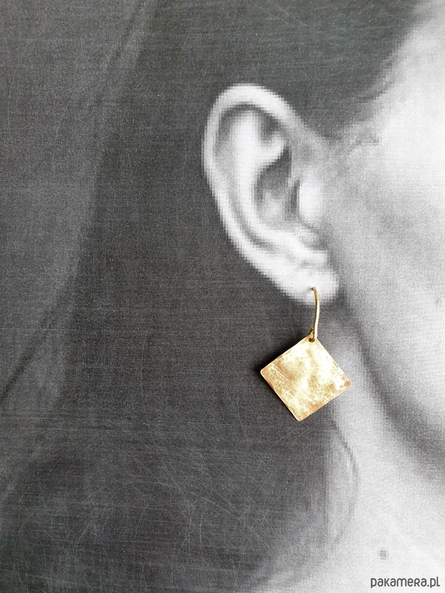Duże minimalistyczne wiszące kolczyki kwadraty z kolekcji ZEN Tworzone ręcznie z surowego mosiądzu (ręcznie wycinane, młotkowane, matowione) błyszczące jak złoto :)