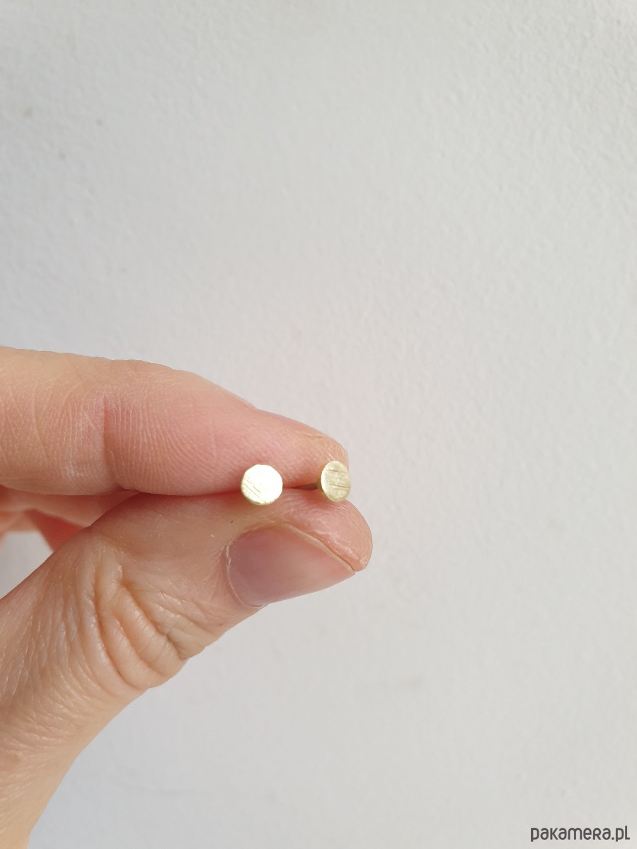 Malutkie minimalistyczne kolczyki kółka sztyfty z kolekcji ZEN Tworzone ręcznie z surowego mosiądzu, z tyłu sztyfty ze stali szlachetnej. Delikatny złoty akcent na twoim uchu.