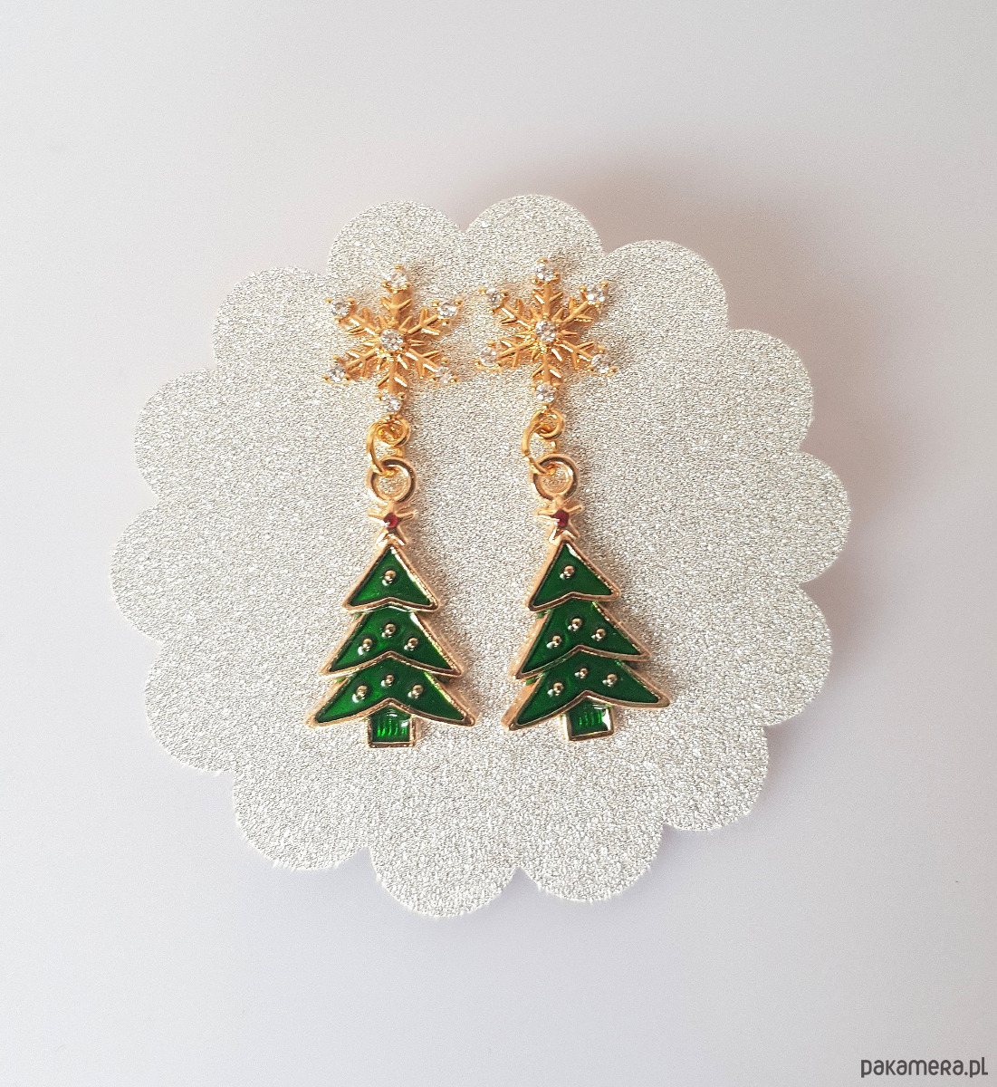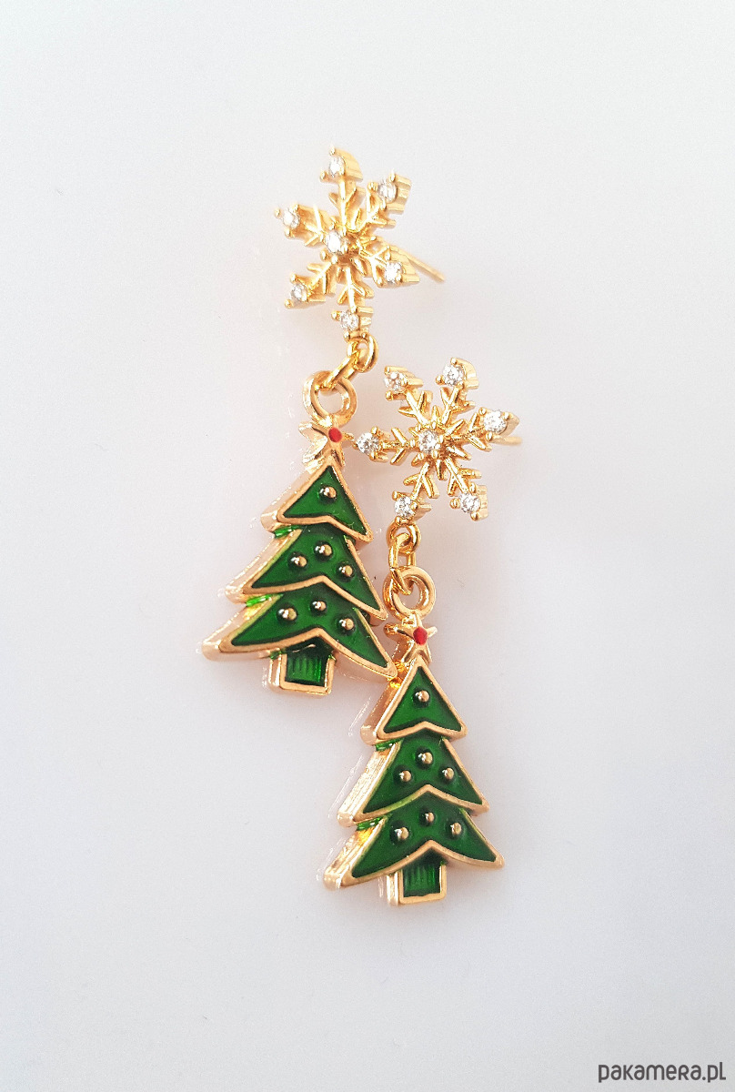 Śnieżynki wykonane z mosiądzu platerowanego złotem i cyrkonii, zawieszka choinka z metalu.