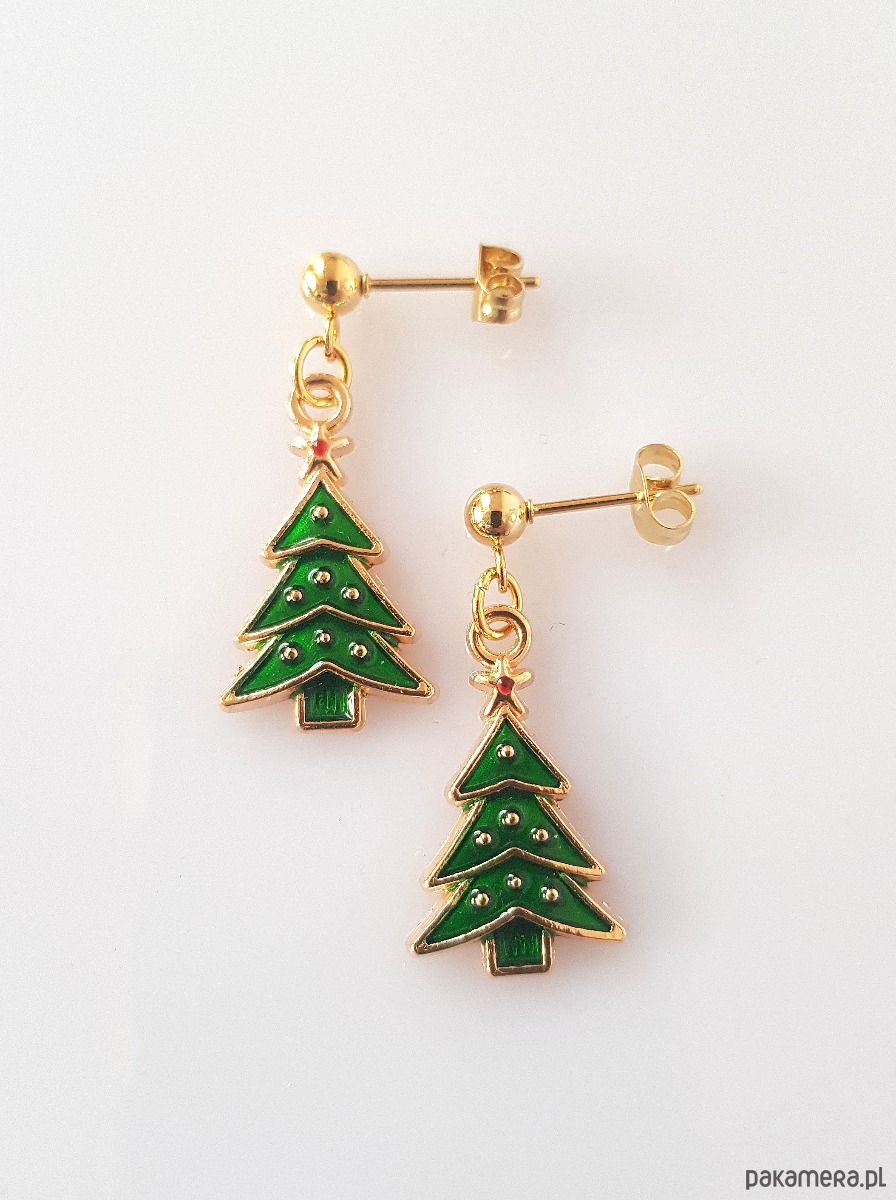 Sztyfty ze stali szlachetnej w kolorze złotym, zawieszka choinka z metalu.