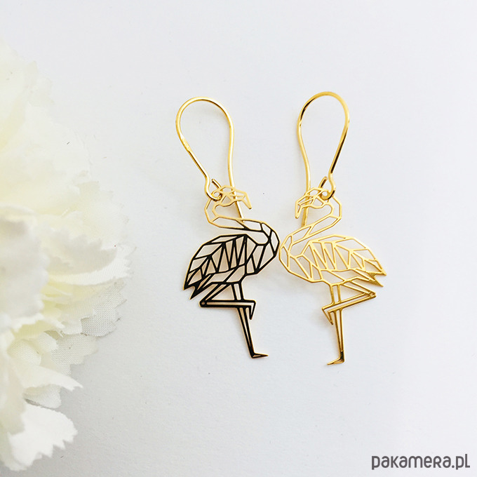 Piękne złocone kolczyki z wyjątkową zawieszką w kształcie flaminga. Unikalny design, delikatne wykonanie. Kolczyki są lekkie i wygodne w noszeniu. Wykonane ze srebra próby 925 i złocone 24 k złotem. Dostępne w srebrze 925.
