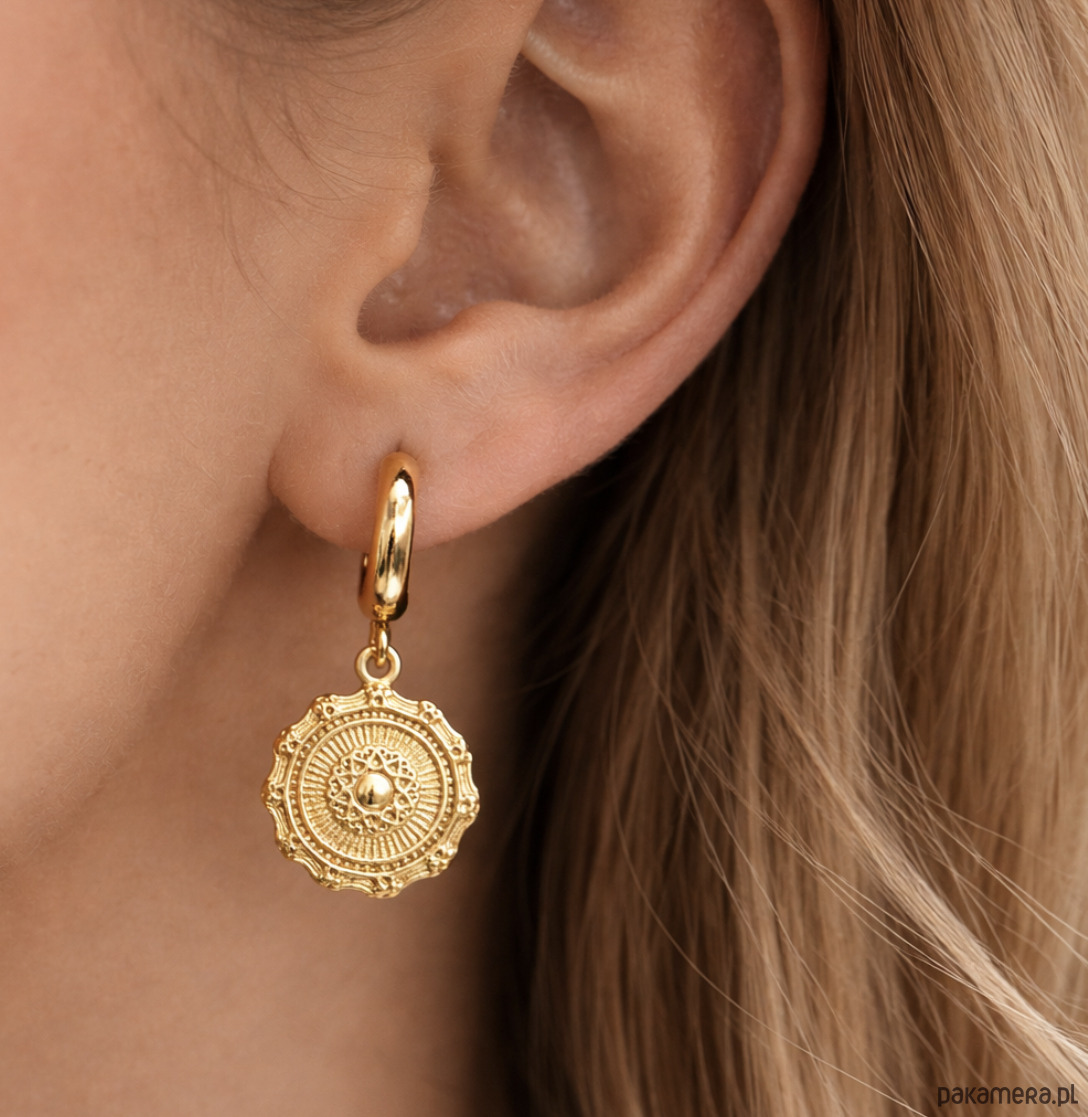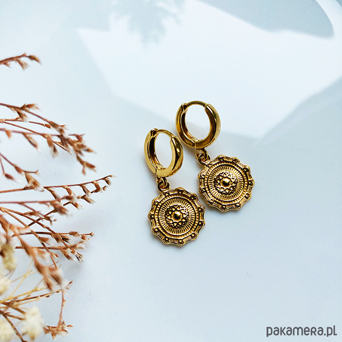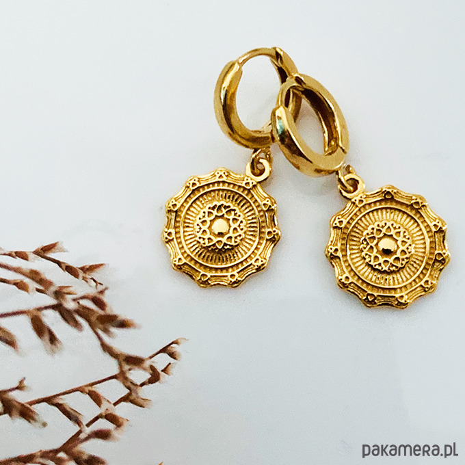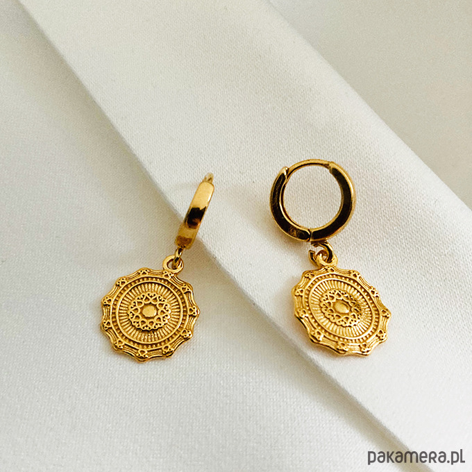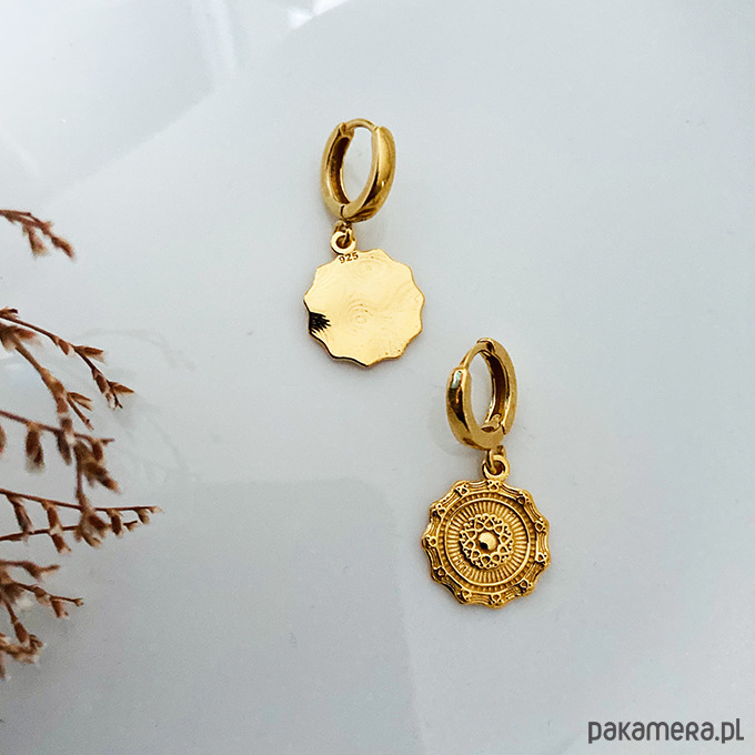 Eleganckie kolczyki o wyjątkowym charakterze, które zachwycają swoją subtelną formą i dopracowanymi detalami. Ozdobne zawieszki w formie medalionów przyciągają spojrzenia.