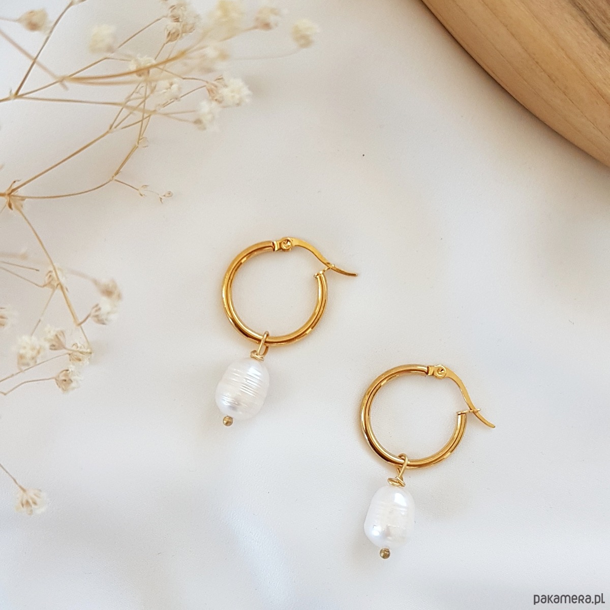 Kolczyki koła (średnica 2cm) wykonane ze stali szlachetnej z perłą naturalną (zawieszkę można zdejmować)