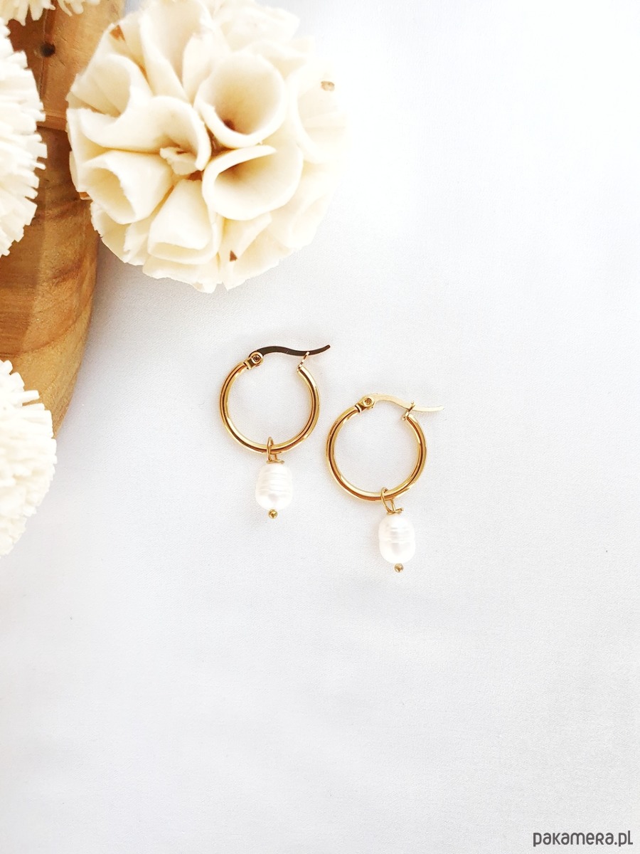 Kolczyki koła (średnica 2cm) wykonane ze stali szlachetnej z perłą naturalną (zawieszkę można zdejmować)