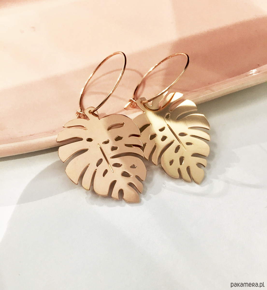 Kolczyki autorskiego projektu "Listki monstera ".