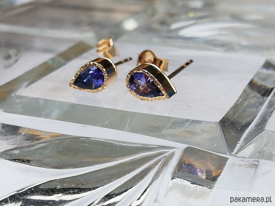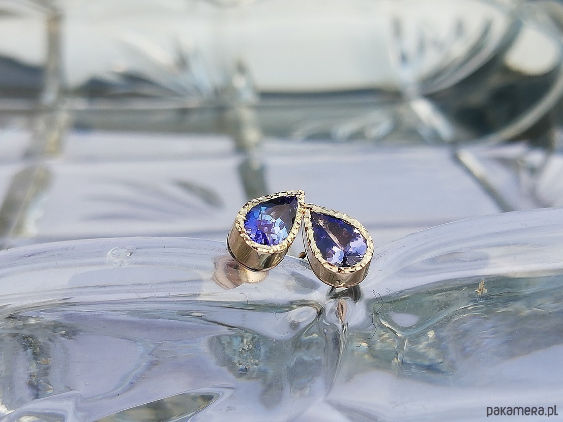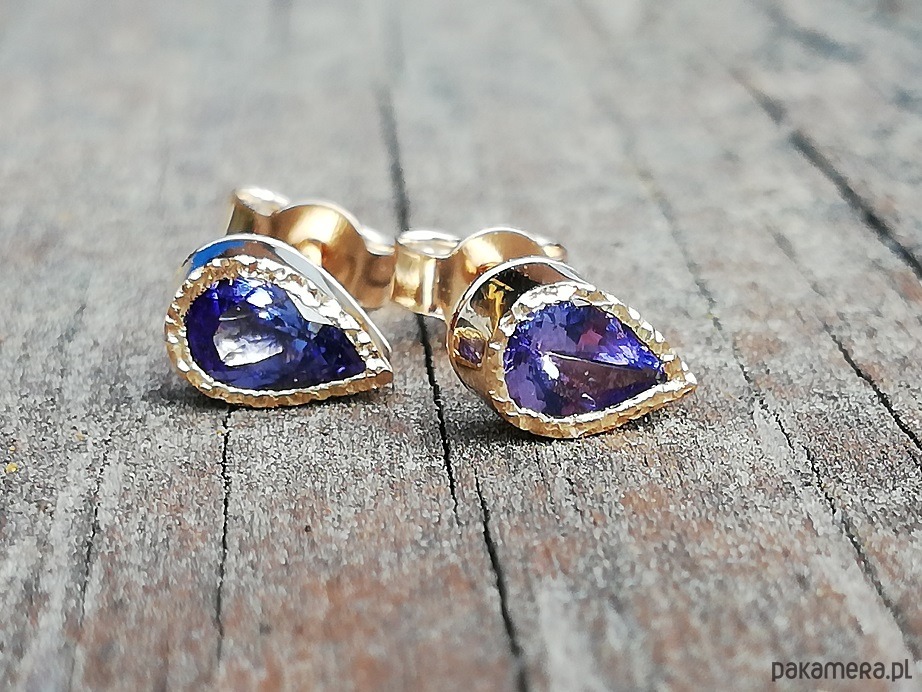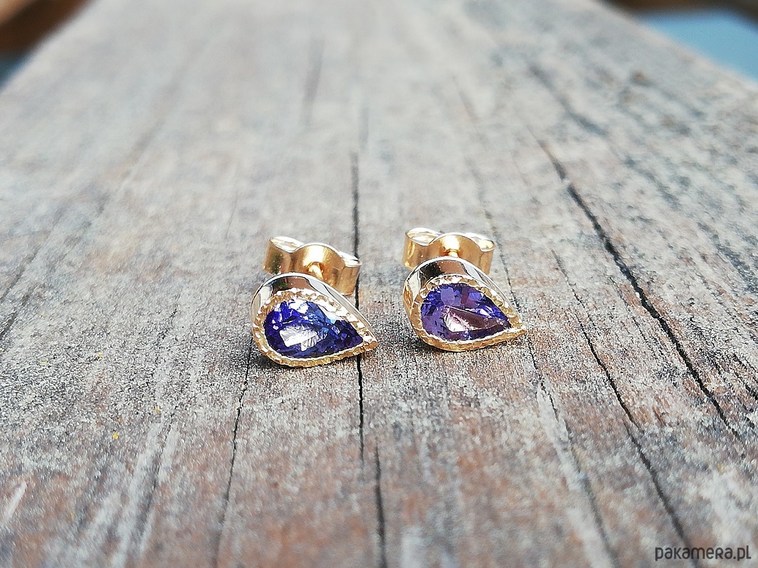Delikatne kolczyki z naturalnymi tanzanitami w żółtym złocie próby 585