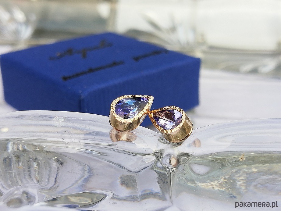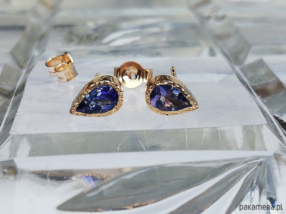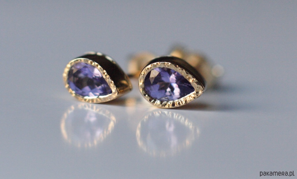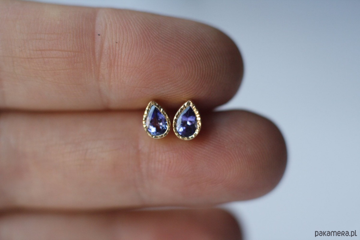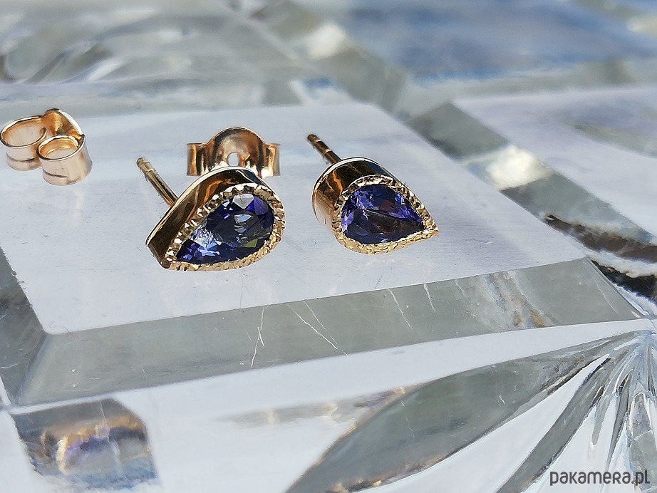 Delikatne kolczyki z naturalnymi tanzanitami w żółtym złocie próby 585
