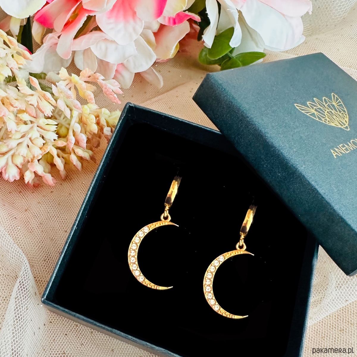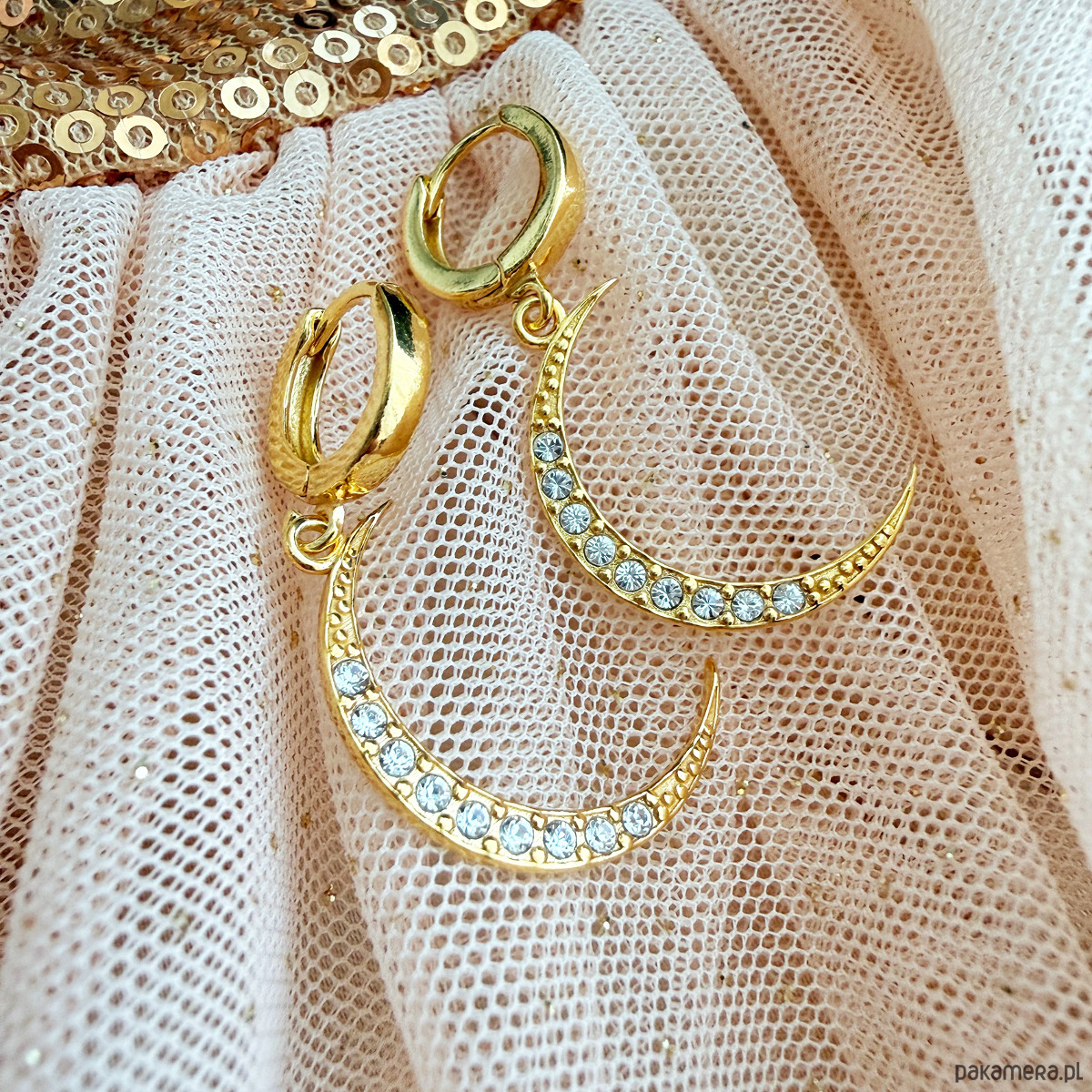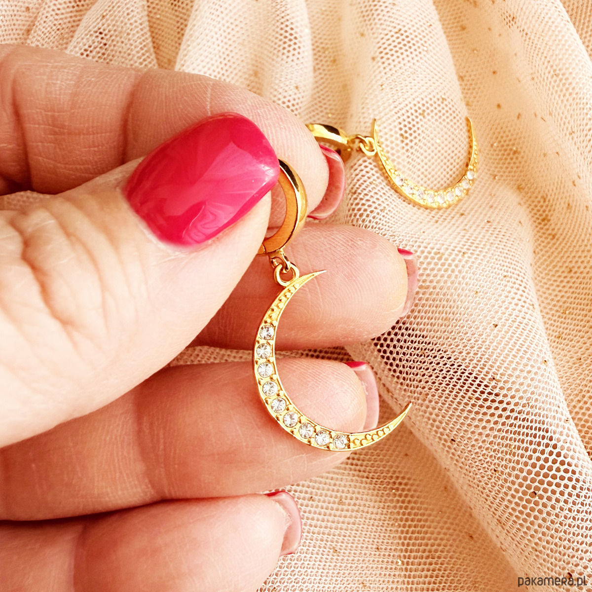 Kolczyki złote księżyce, księżyc z cyrkoniami